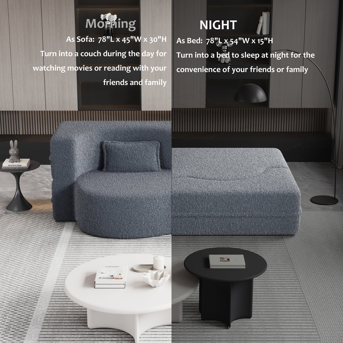 Convertible Teddy Fabric Foam-Filled Sleeper Sofa Bed