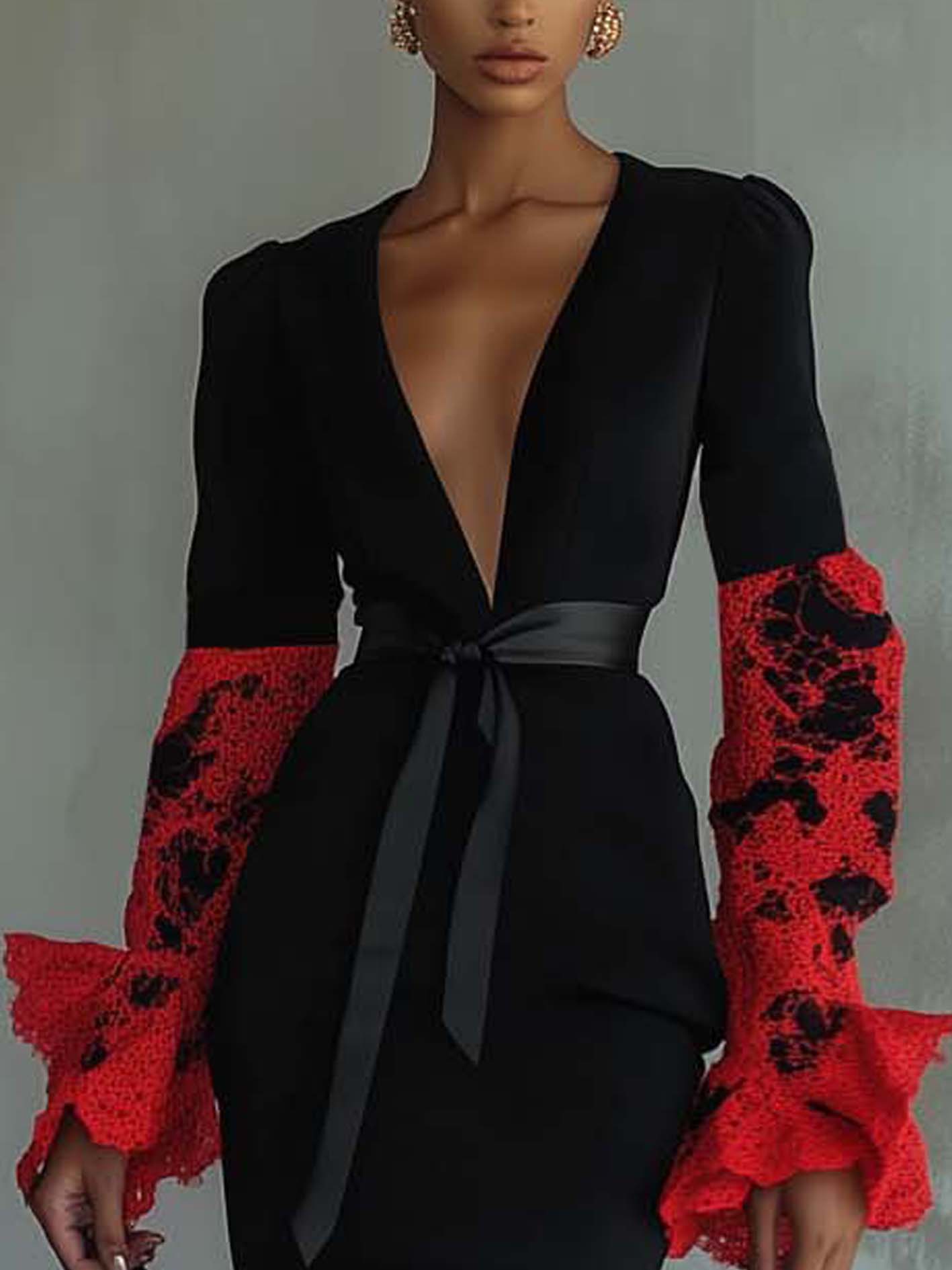 Black Mini Dress With Red Lace Sleeves