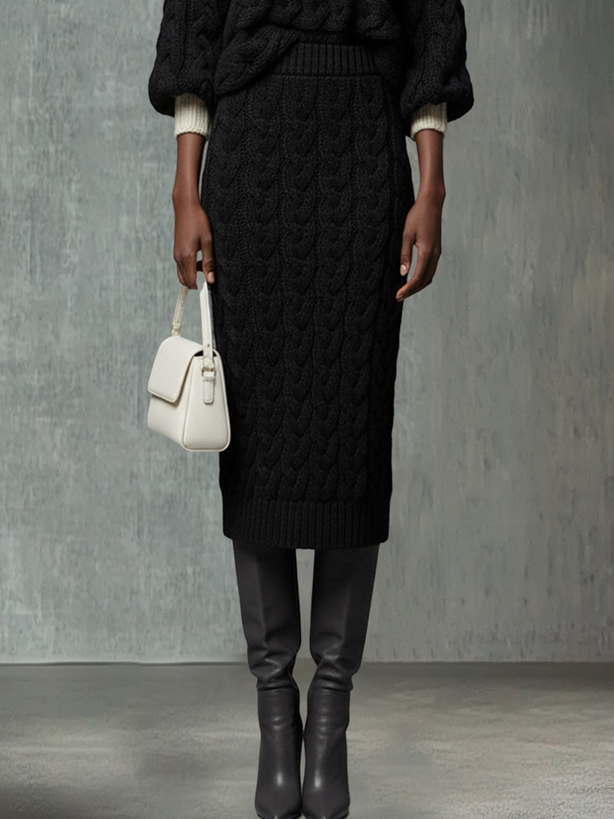 Black Sophisticated Cable Knit Set