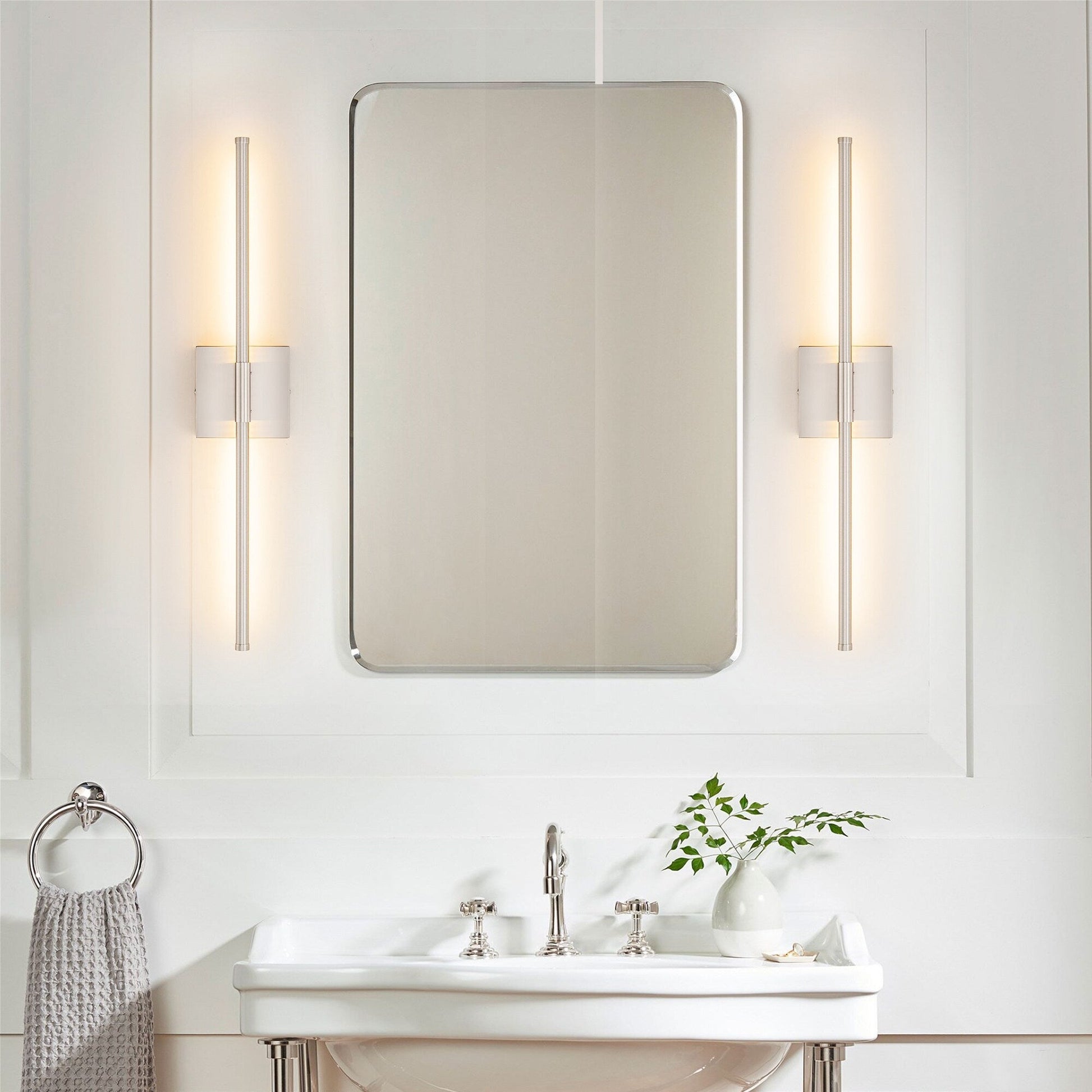 1-Light Black/ Gold/ Nickel Modern Long Linear Strip Wall Sconce Dimmable LED Bathroom Vanity Light