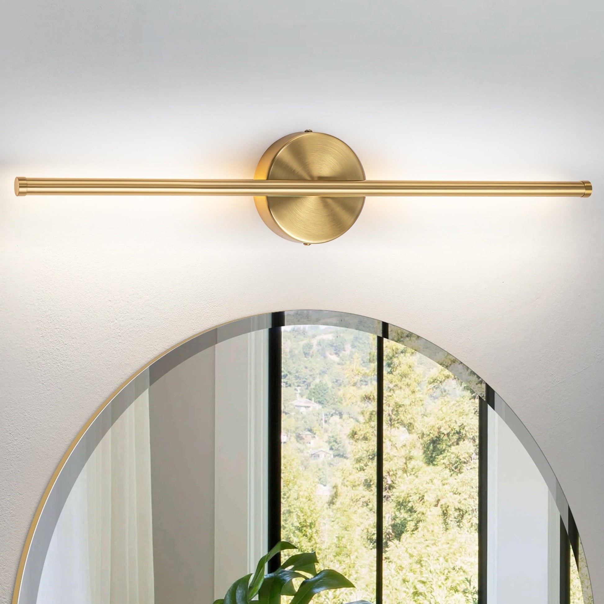 Feature with linear configuration LED lamp body, this gold/ black LED wall light has clean silhouetting and shows sophisticated minimalism, which will bring chic transitional into your space. The dimmable LED bathroom vanity light over mirror can be installed vertical or horizontally according to your need. It is made of metal and silicone strips, not easy to be rust or fall down, can use as a modern artistic decor in your house. Flex your elegant style with this modern linear and vintage LED bathroom wall light. Perfectly for your bathroom, bedroom, make-up mirror, living room, dining room, doorway, den, hallway etc.