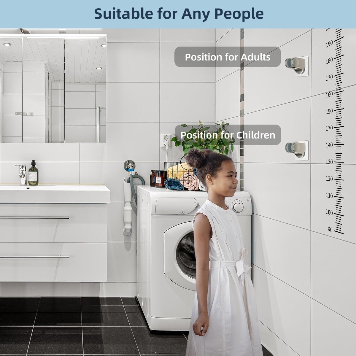 • 12'' Upgraded Shower Extension Arm: Height & angle adjustable curved design enhances its bearing capacity, high rise your shower head to achieve vertical water. Compared with the regular shower arm extender, the shower arm extension can raise the shower head higher or lower and keep the shower head in a horizontal position all the way. The shower head is always vertical in your large size and will not hit the shower arm, instead of sloping water like an ordinary straight shower arm.