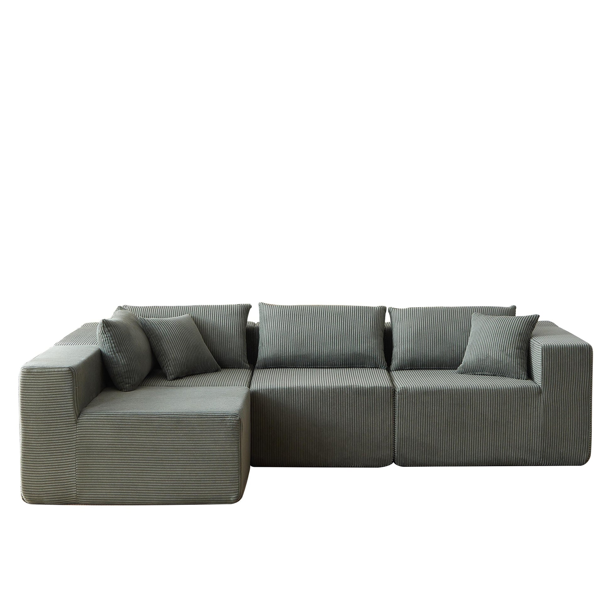 Minimalist Modular Sectional Sofa Set: The modern modular L-shape sofa couch features a simple style, focusing more on clean lines and premium Corduroy fabric to bring a timeless and chic to your home, sure make your living room the center of attention.