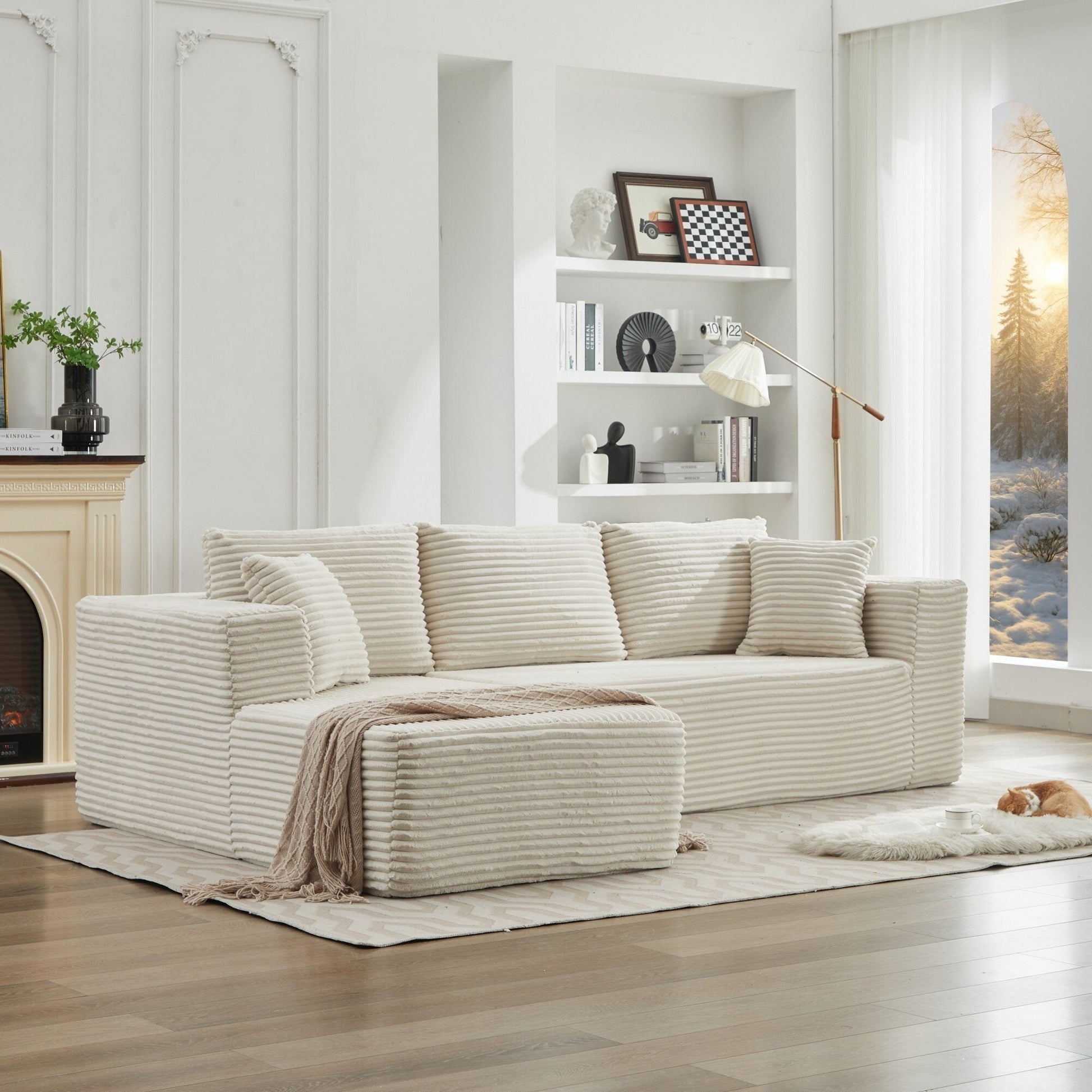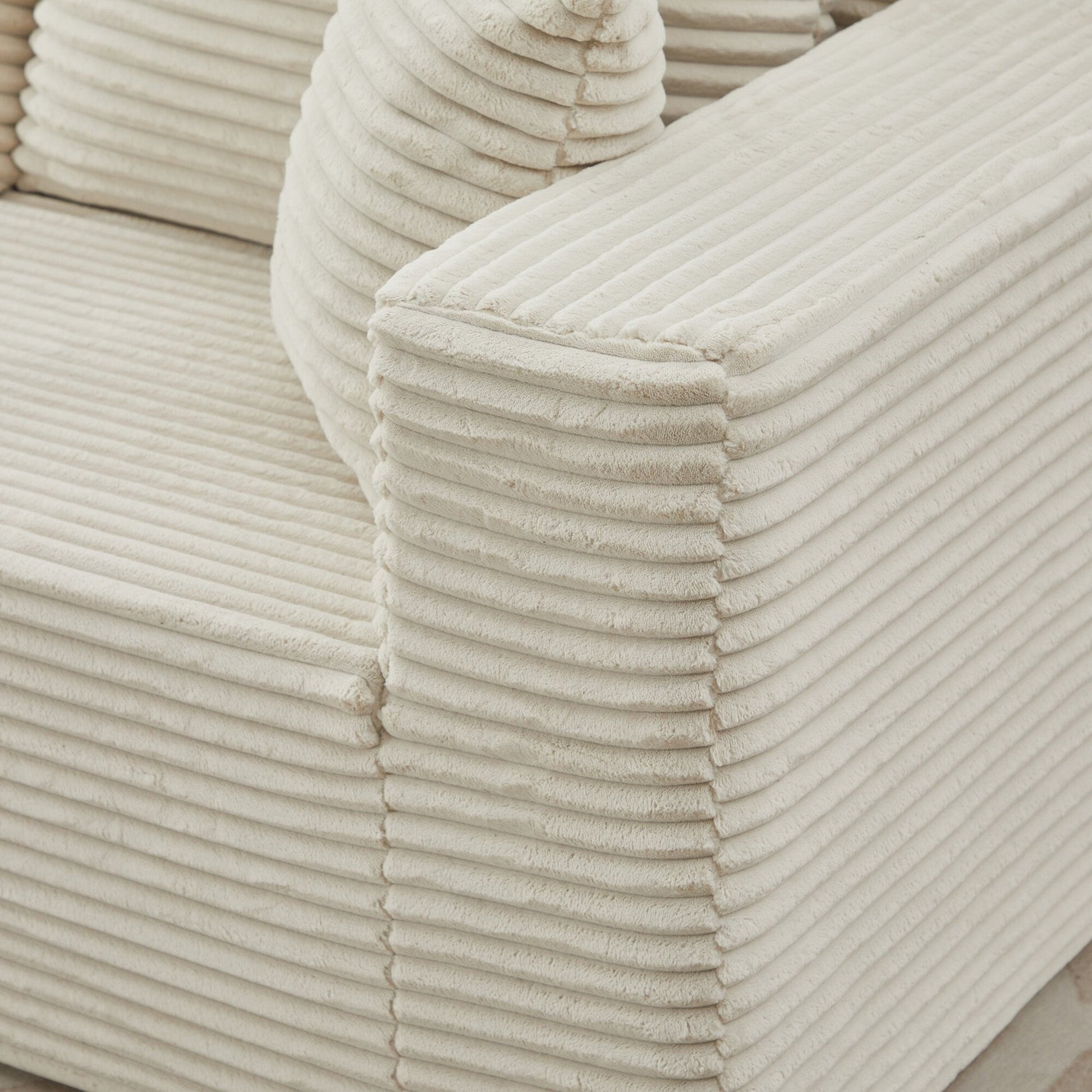 Plush Corduroy Fabric: Our sofa set is wrapped in premium corduroy, giving you unrivaled softness and warmth. The upgraded material offers better breathability and stain resistance, making the fluffy couch easy to care for and clean. The unique texture and soft sheen make it stand out, providing gentle pampering no matter the season