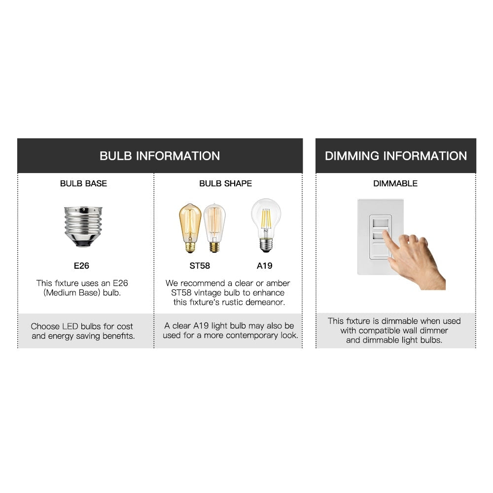 Vintage style Edison bulbs recommended (bulb not included)