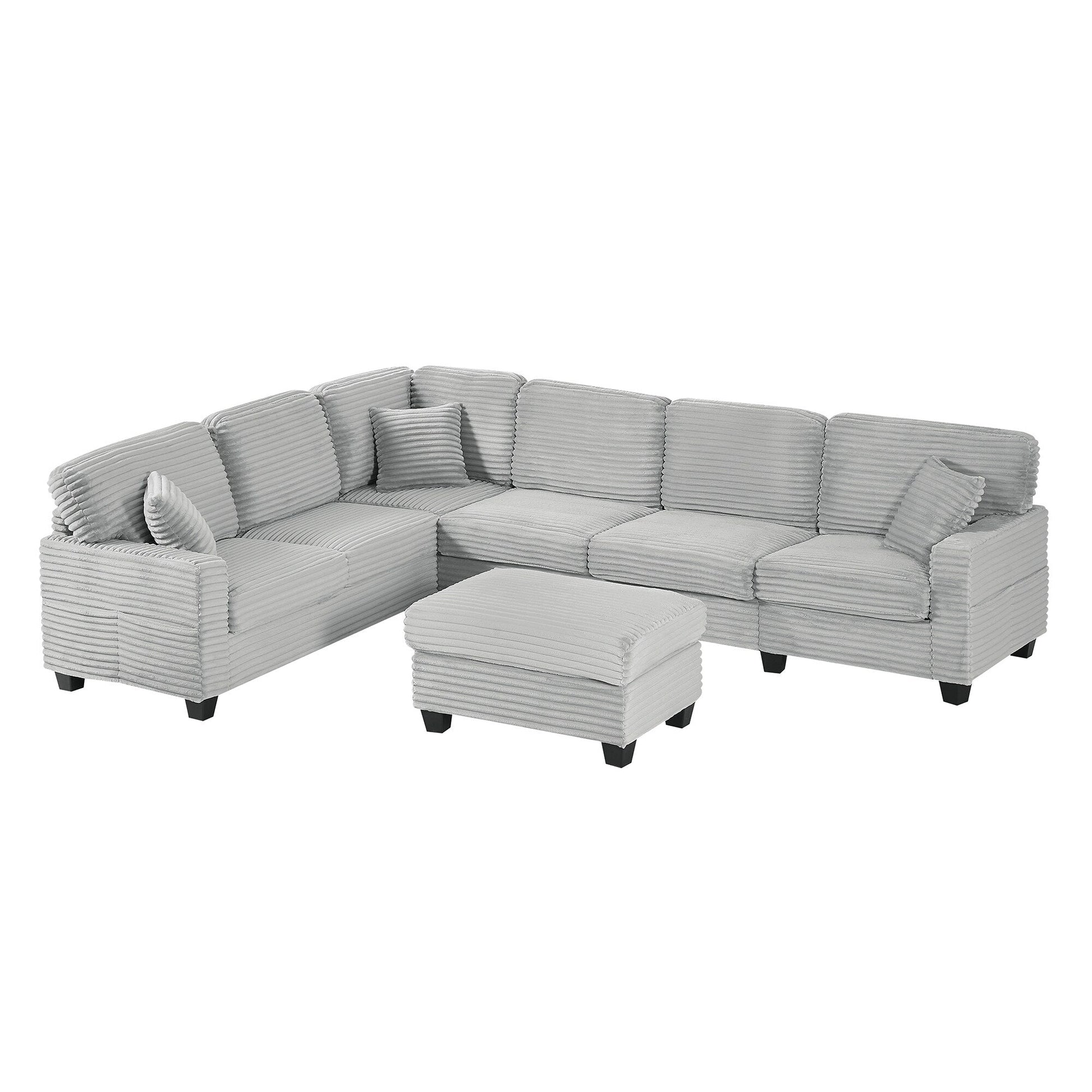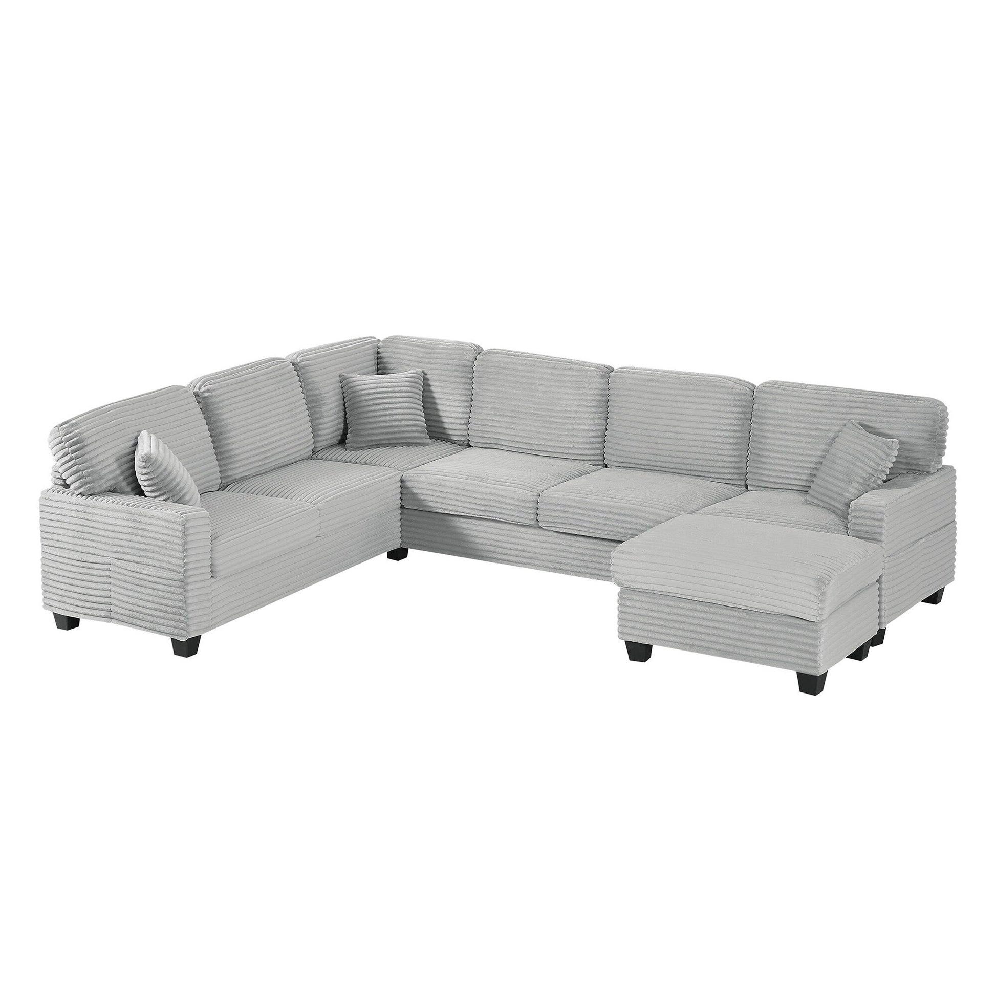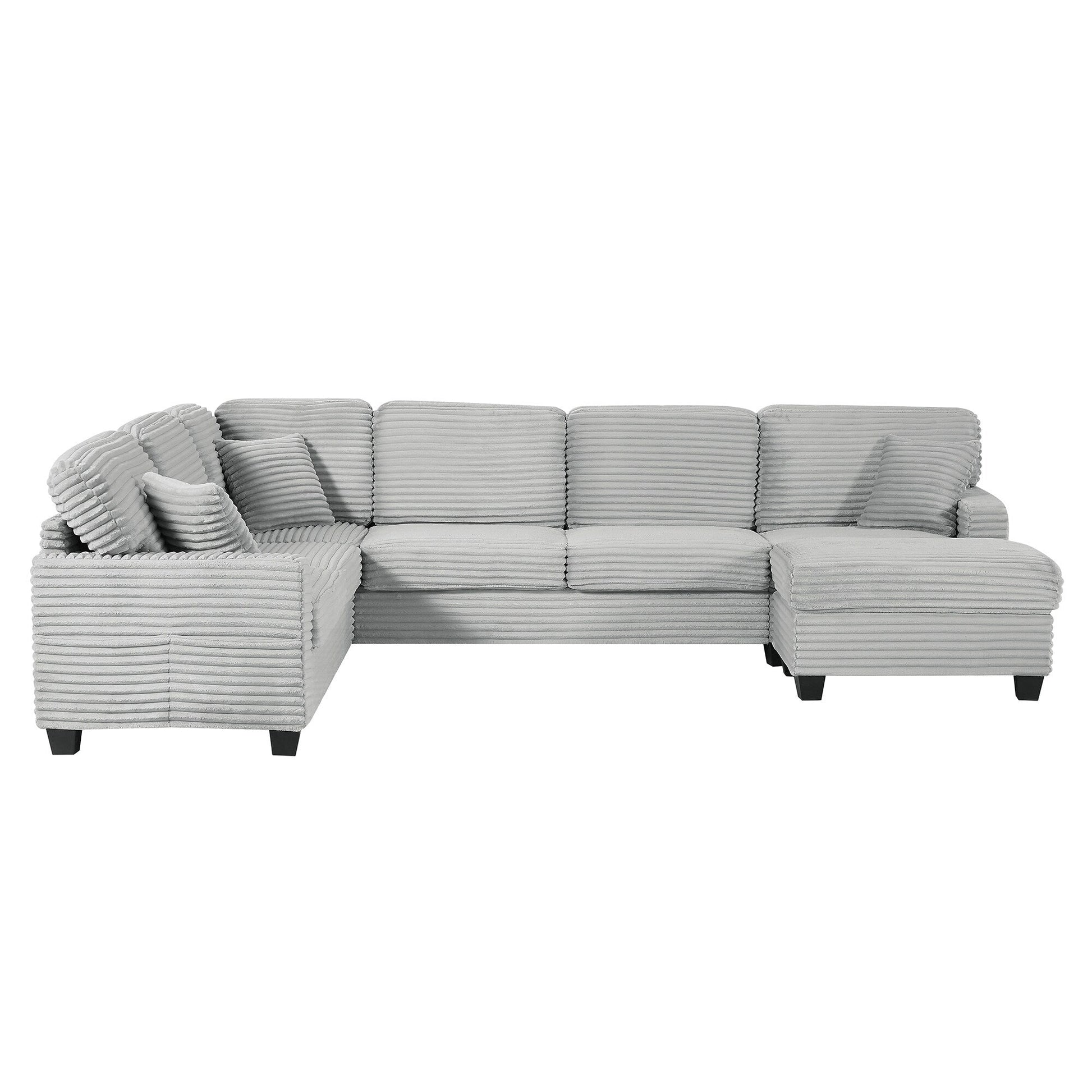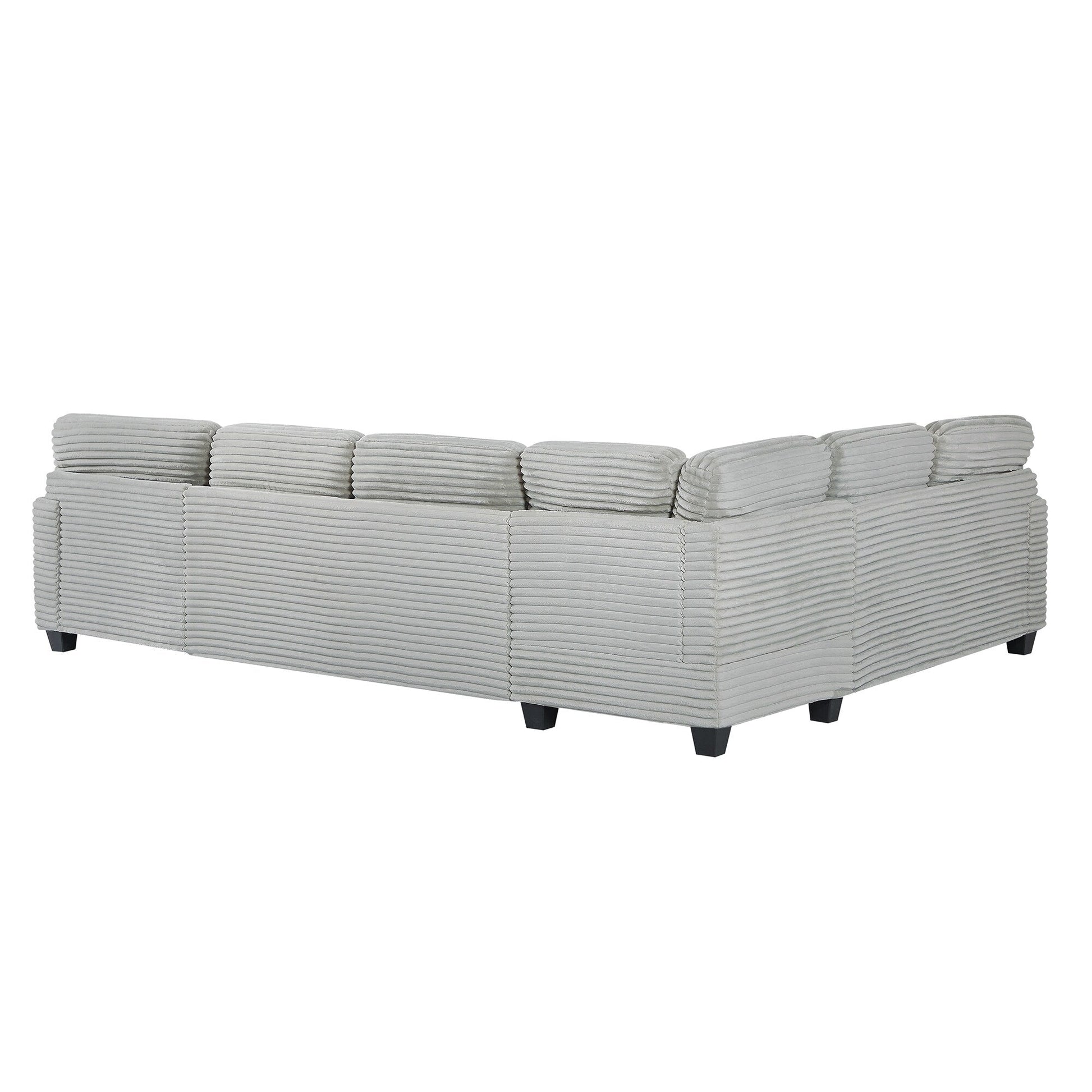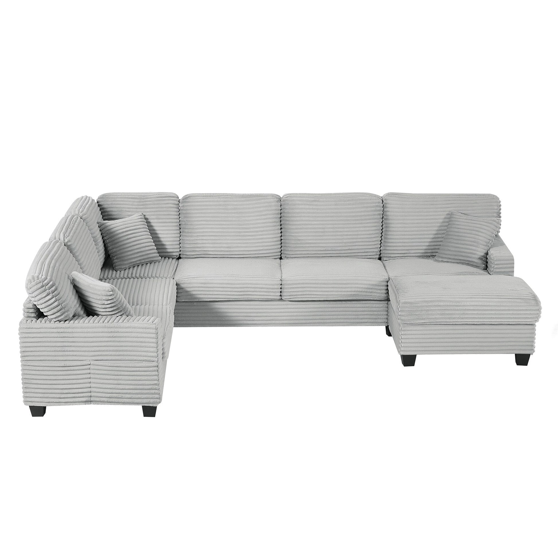 125'' Corduroy U-shaped Sectional Sofa with Movable Ottoman