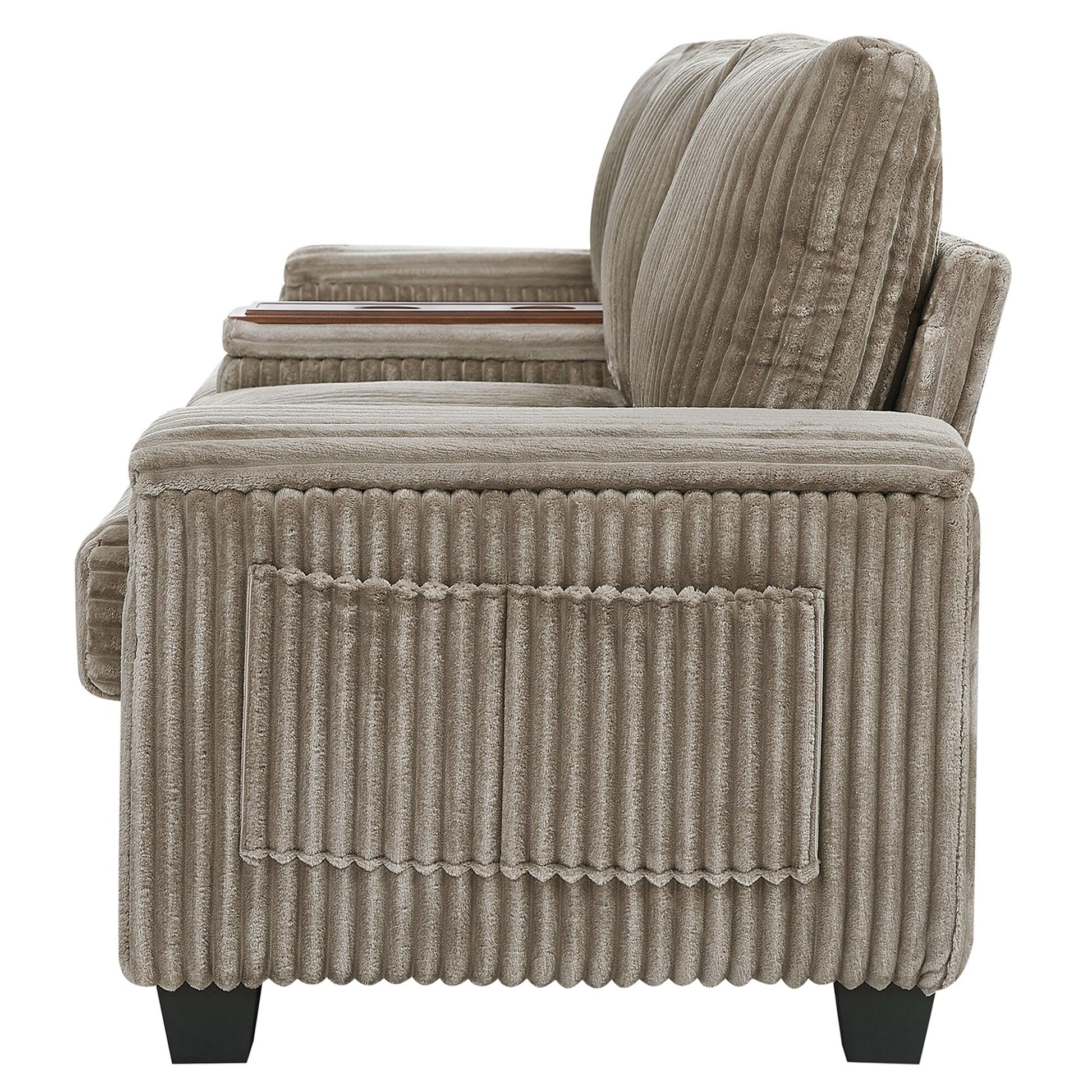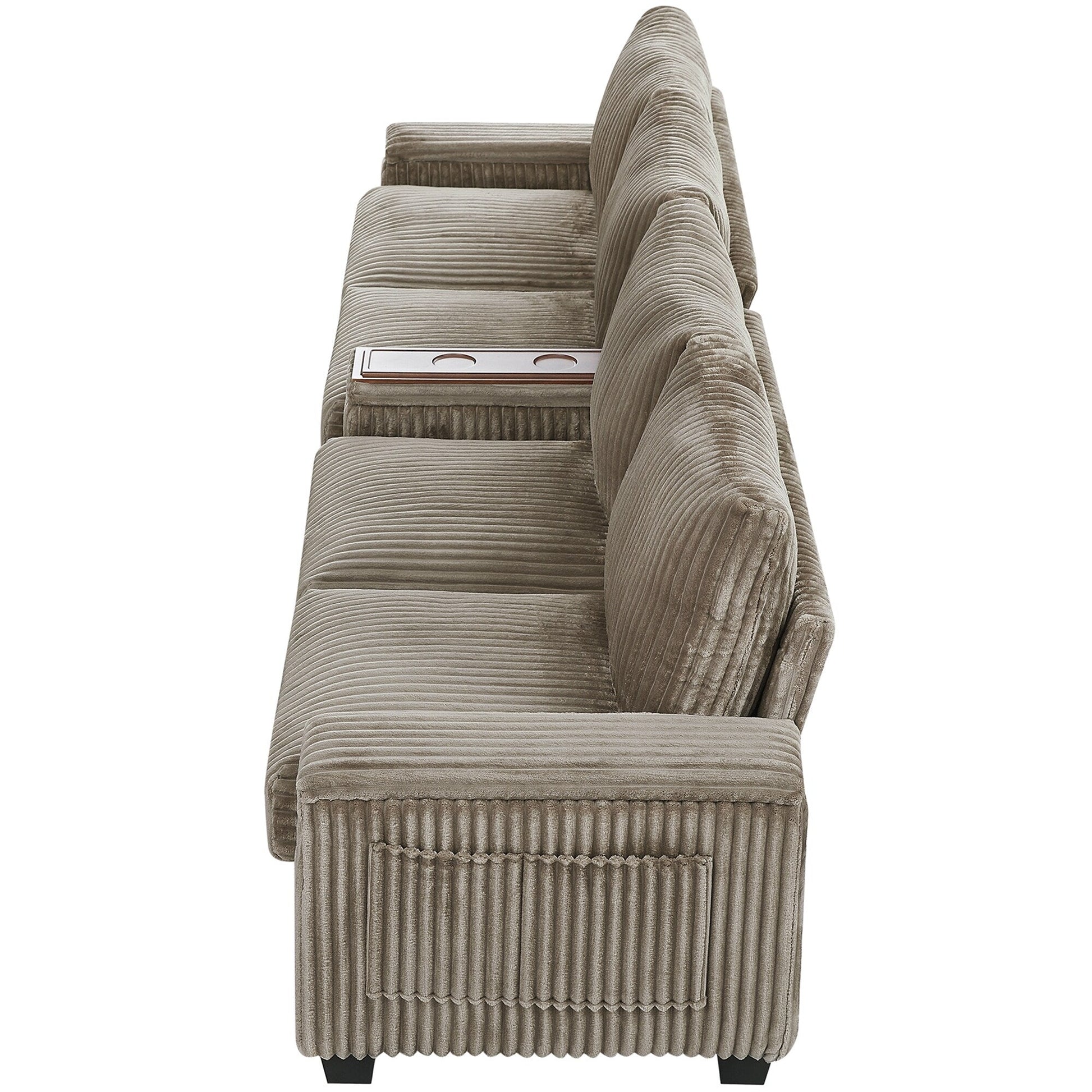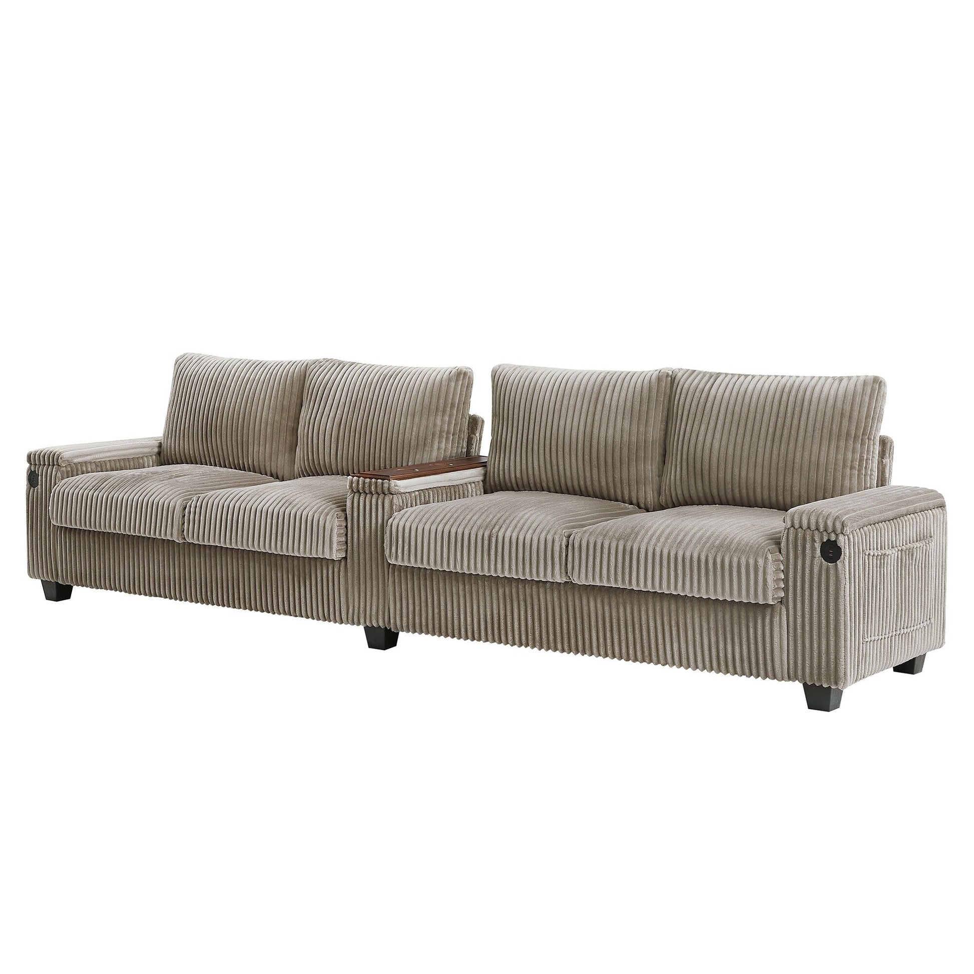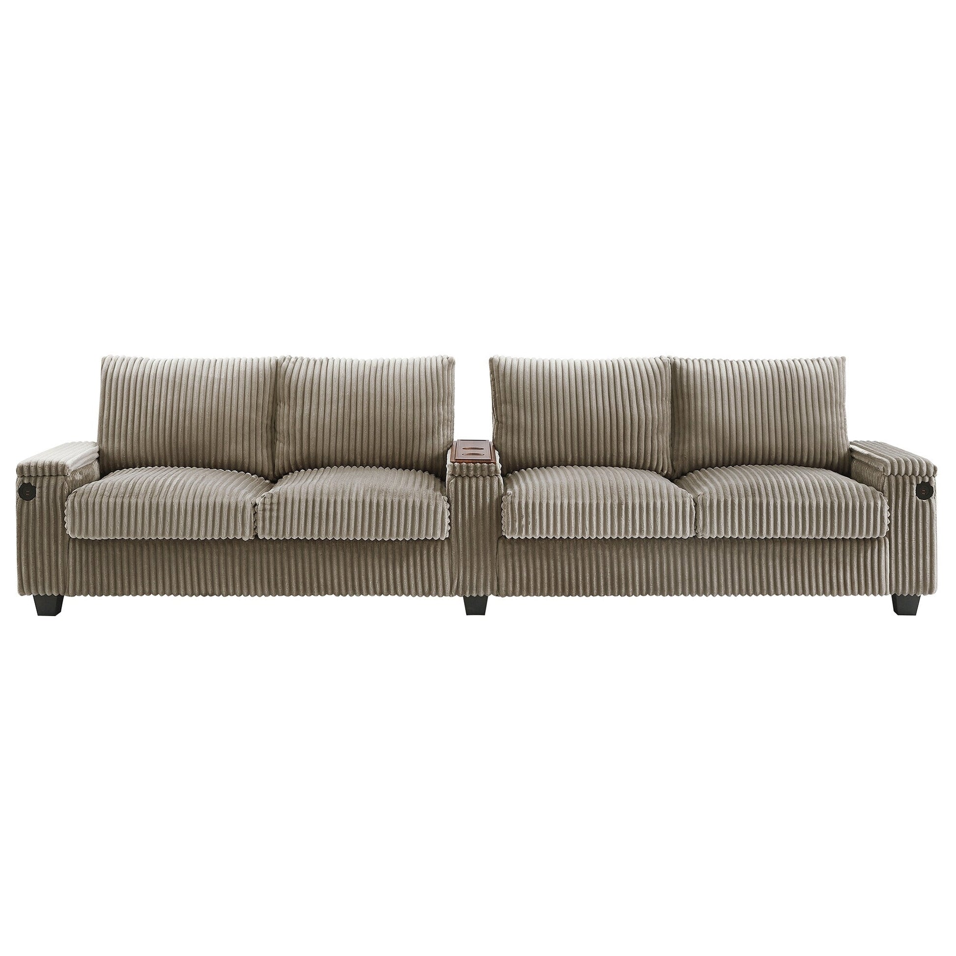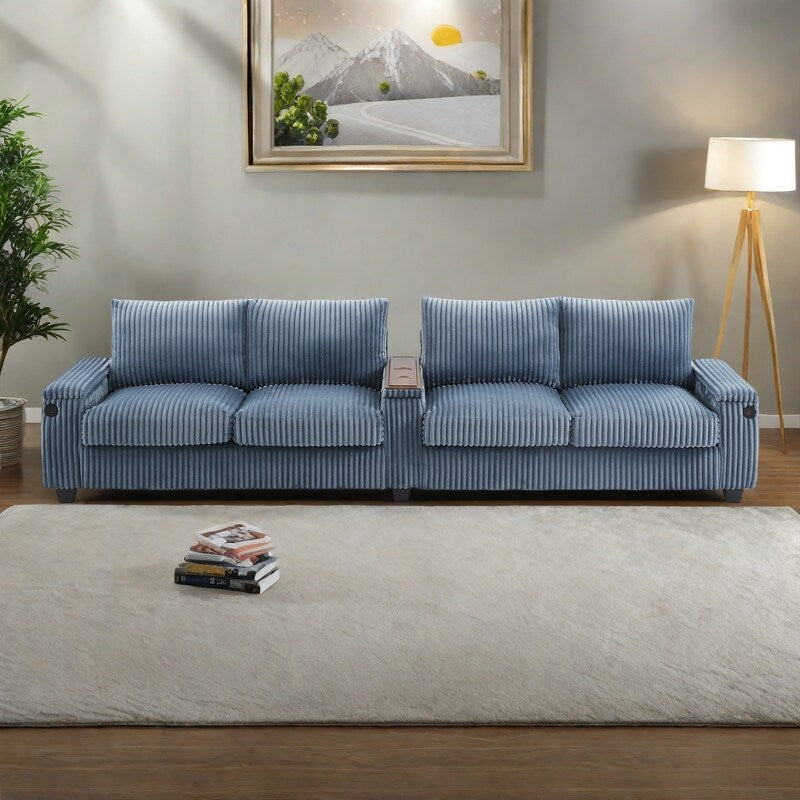 133 Corduroy 4-Seater Sofa with USB Ports, Flip-Top Cup Holders, and Hidden Storage