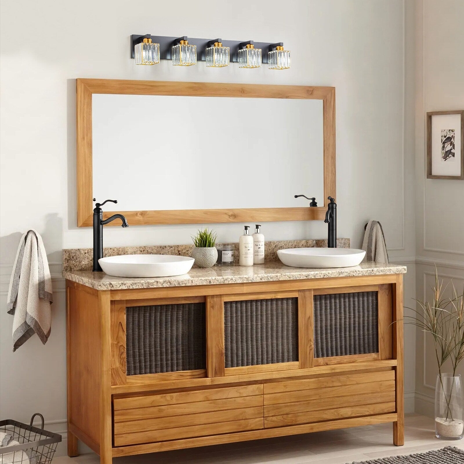 This crystal vanity light for the bathroom combines a unique Square Lampshade with modern crystal, and looks elegant and exquisite. It is perfect for your bathroom, living room, bedroom bedside, and entryway. Not only a simple vanity lighting but also a good decoration for your home.