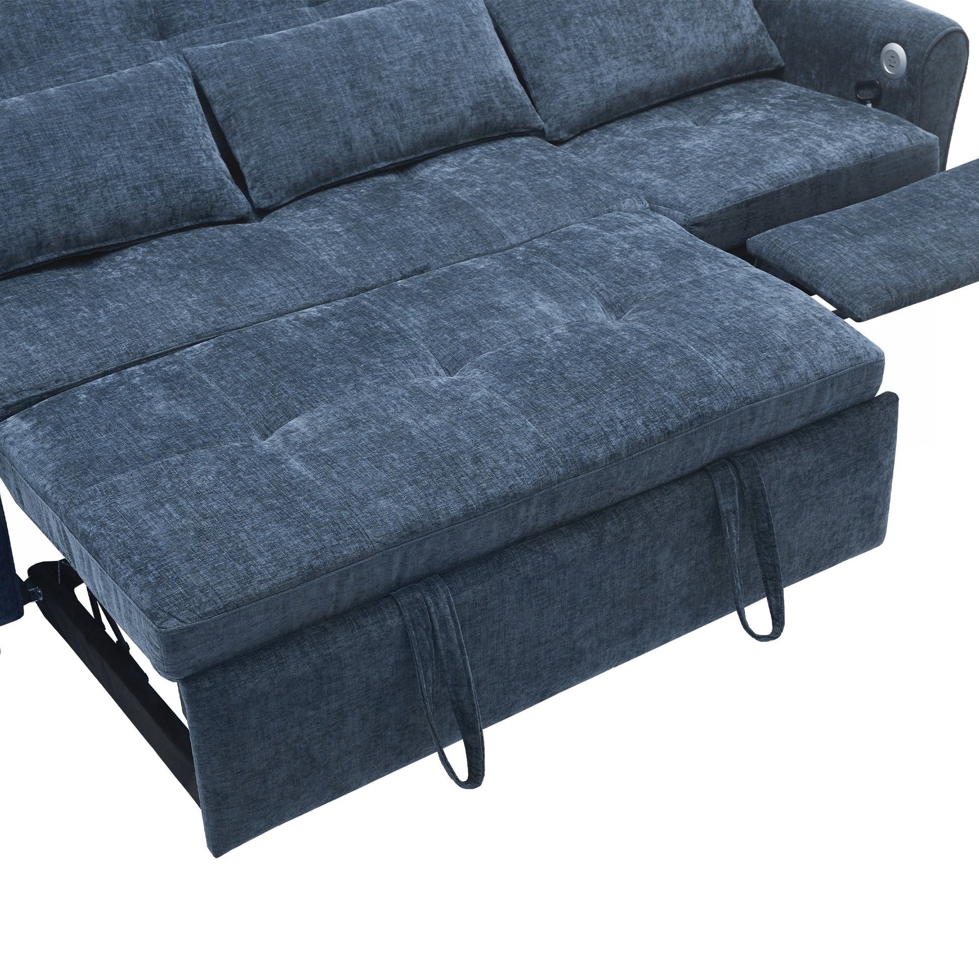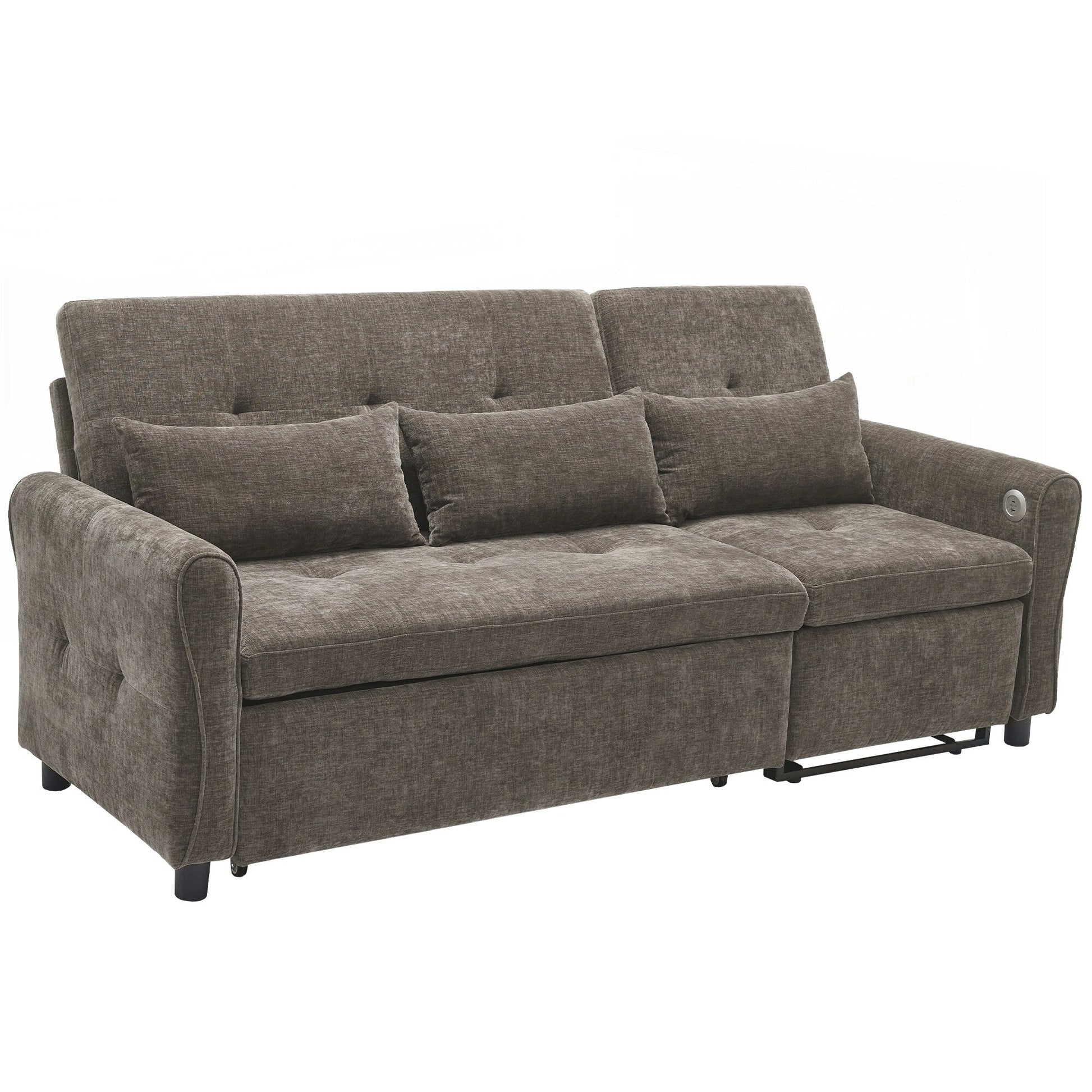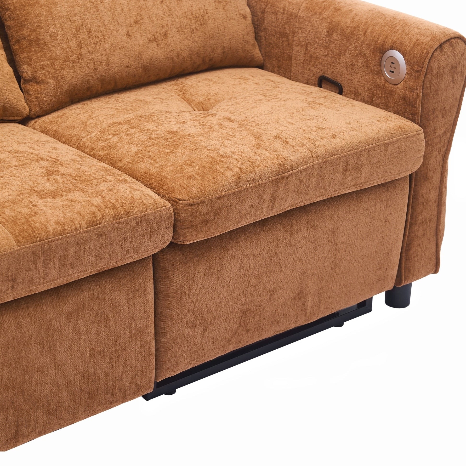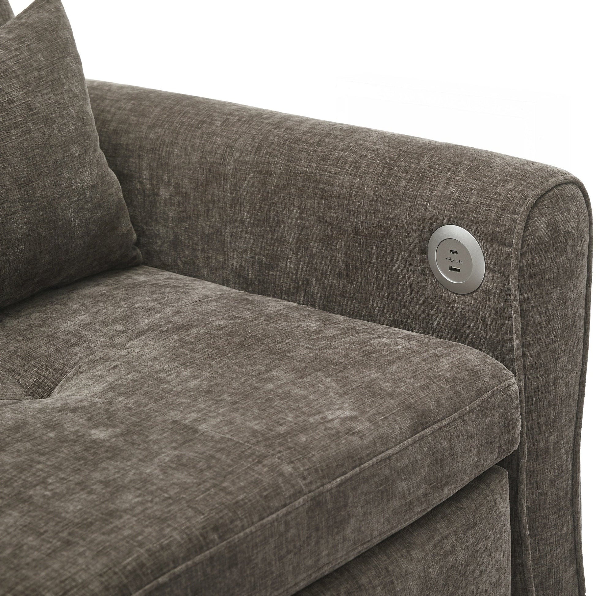 Dual USB Charging Ports Equipped with two built-in USB charging ports conveniently located on the armrest, this sofa lets you easily charge smartphones, tablets, or other electronic devices without leaving your seat. Elegant Curved Armrests with Tufted Detailing The sofa features gracefully rounded armrests that offer both enhanced arm support and a timeless, elegant silhouette. Button-tufted detailing on the backrests and seat cushions adds refined visual texture, elevating the overall aesthetic.