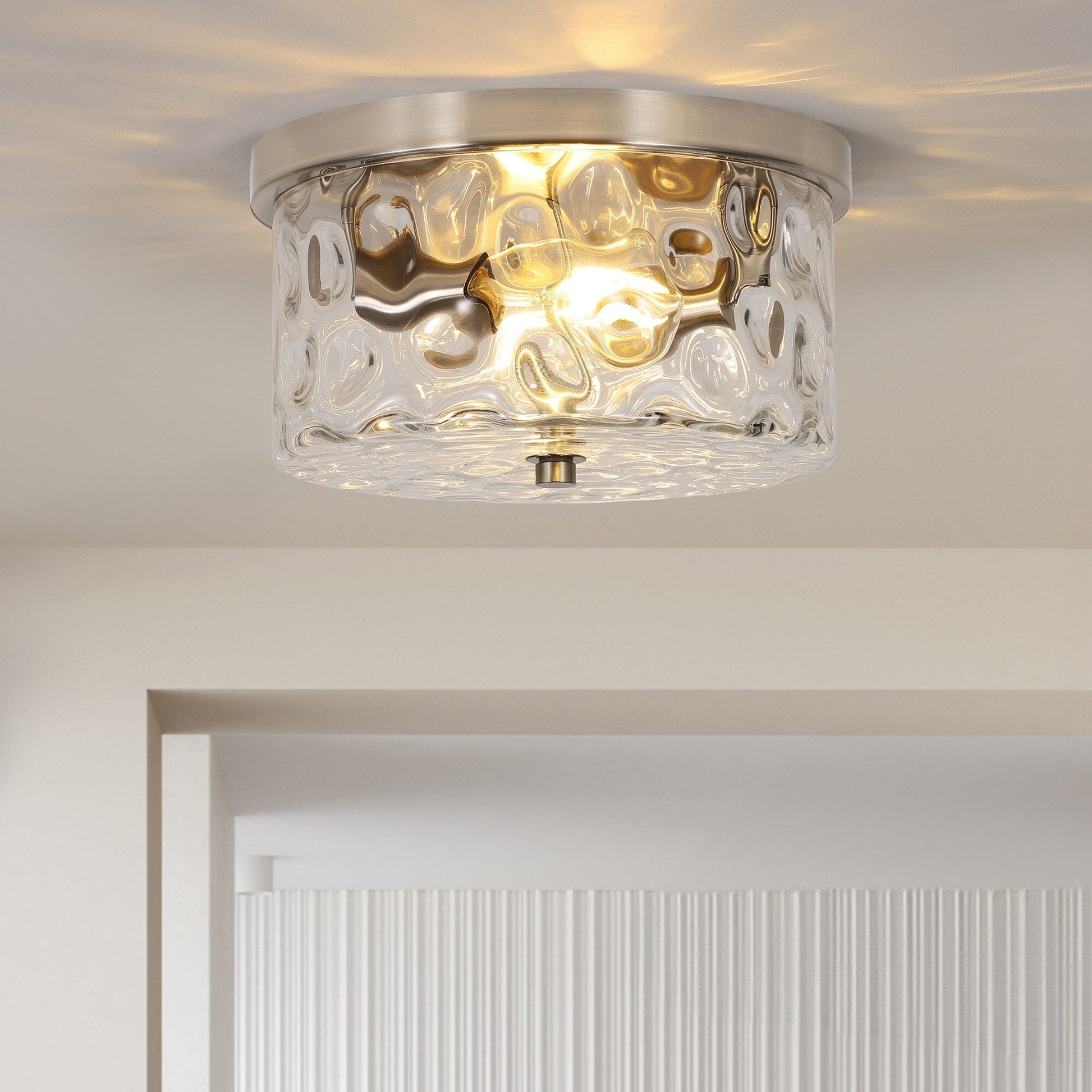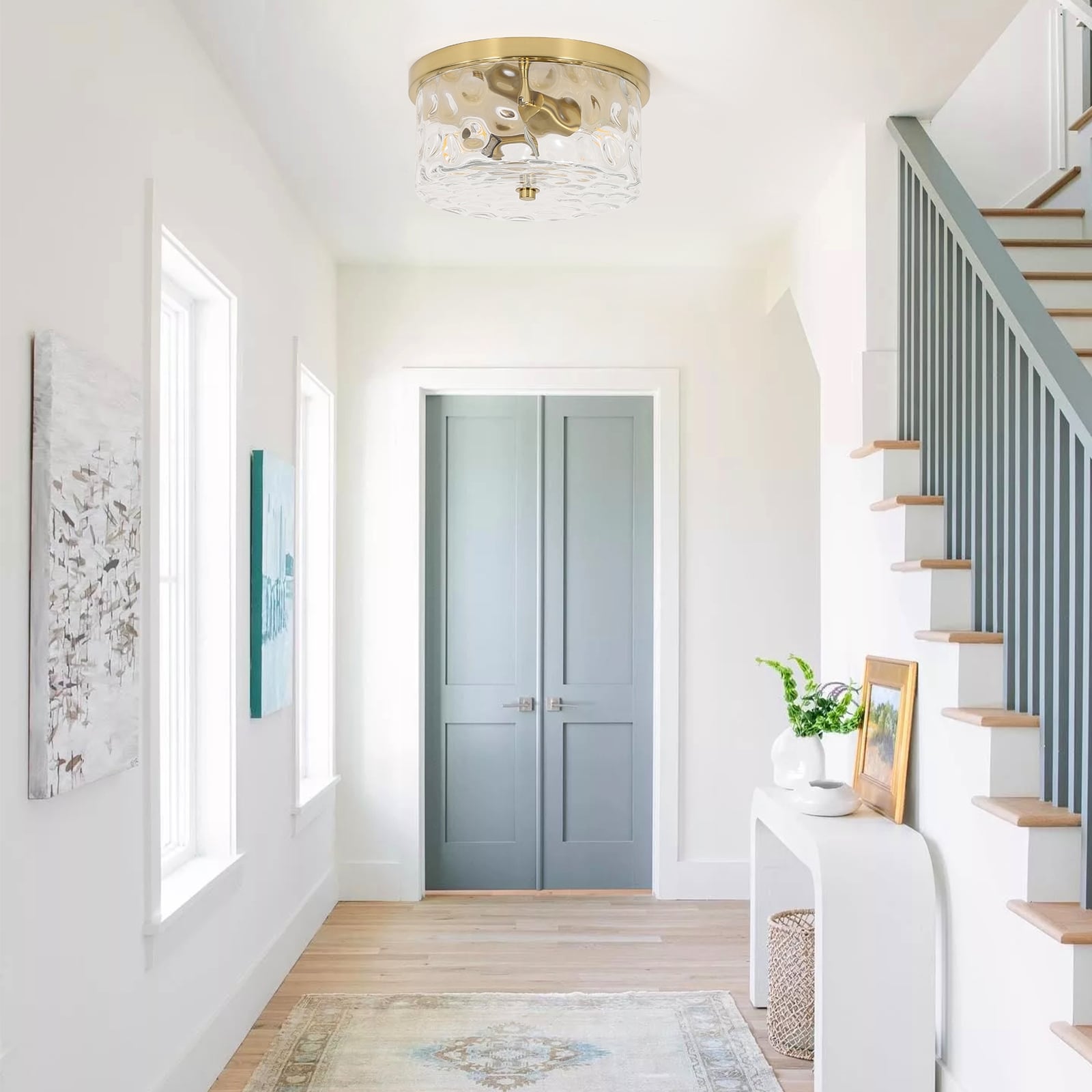 Modern and Farmhouse Design: This flush mount features metal frame with hammered glass lampshade ,provides an appealing effect which perfectly be added to your mordern and farmhouse theme.