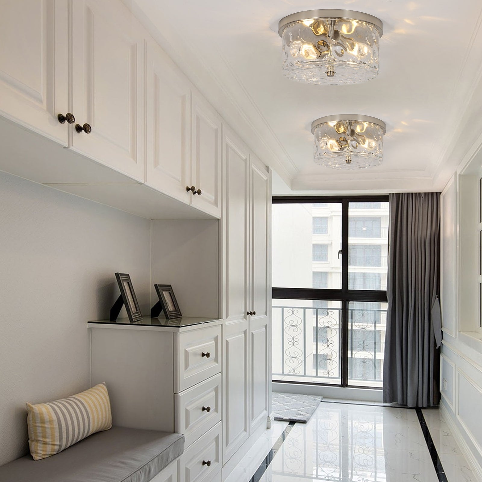 This ceiling light fixtures is made of sturdy metal base, covered with the delicate hammered glass lampshade, allows the lights to diffuse farther and brighter,make the 2-light more vivid and with a vintage sense. This light is hardwired, includes essential mounting hardware for quick and easy installation.Popularly used in halls, stairways, entrance, kitchen, bedroom, bathroom,and other places you want to decor.