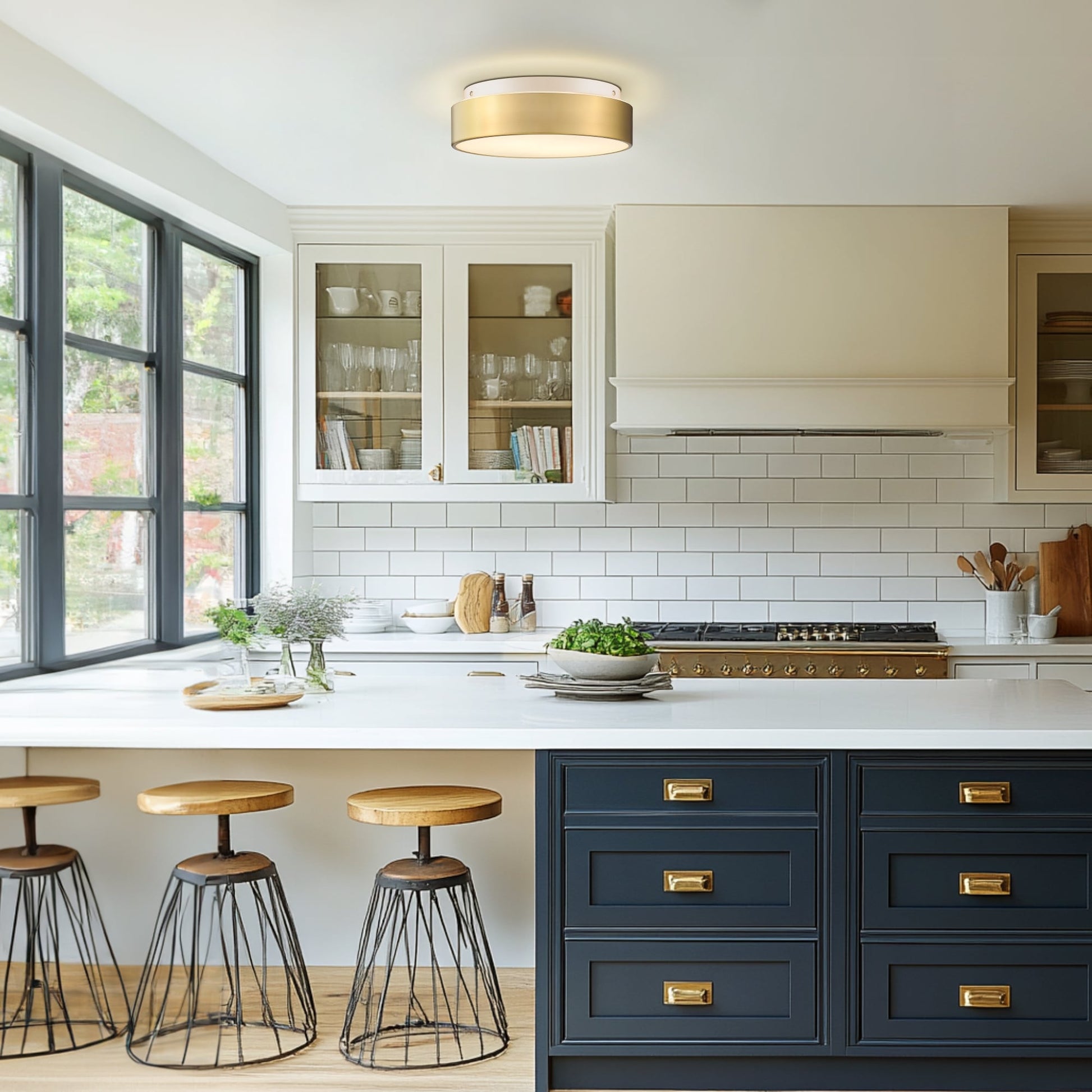 This Flush Mount Light is made of high-quality metal frame and frosted glass, which is durable and non-glare. Simple shape and brass gold finish design, can perfectly match any decoration. The semi flush mount ceiling light not only provides you with lighting, but also enhances your sense of life atmosphere.The ceiling lamp is perfect for kitchen, bathroom, bedroom, living room, dining room, study room, porch and entryway, etc.