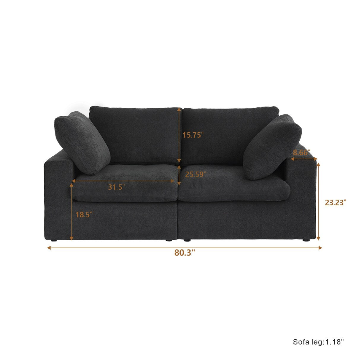 ãIncludingã? Seater Sofa, 2 Pillows. Overall Size: 80.3 'W x 40.15 'D x 23.23 'H. Sofa legs: 1.18' H. This living room sofa will be packed in 2 packaging boxes.