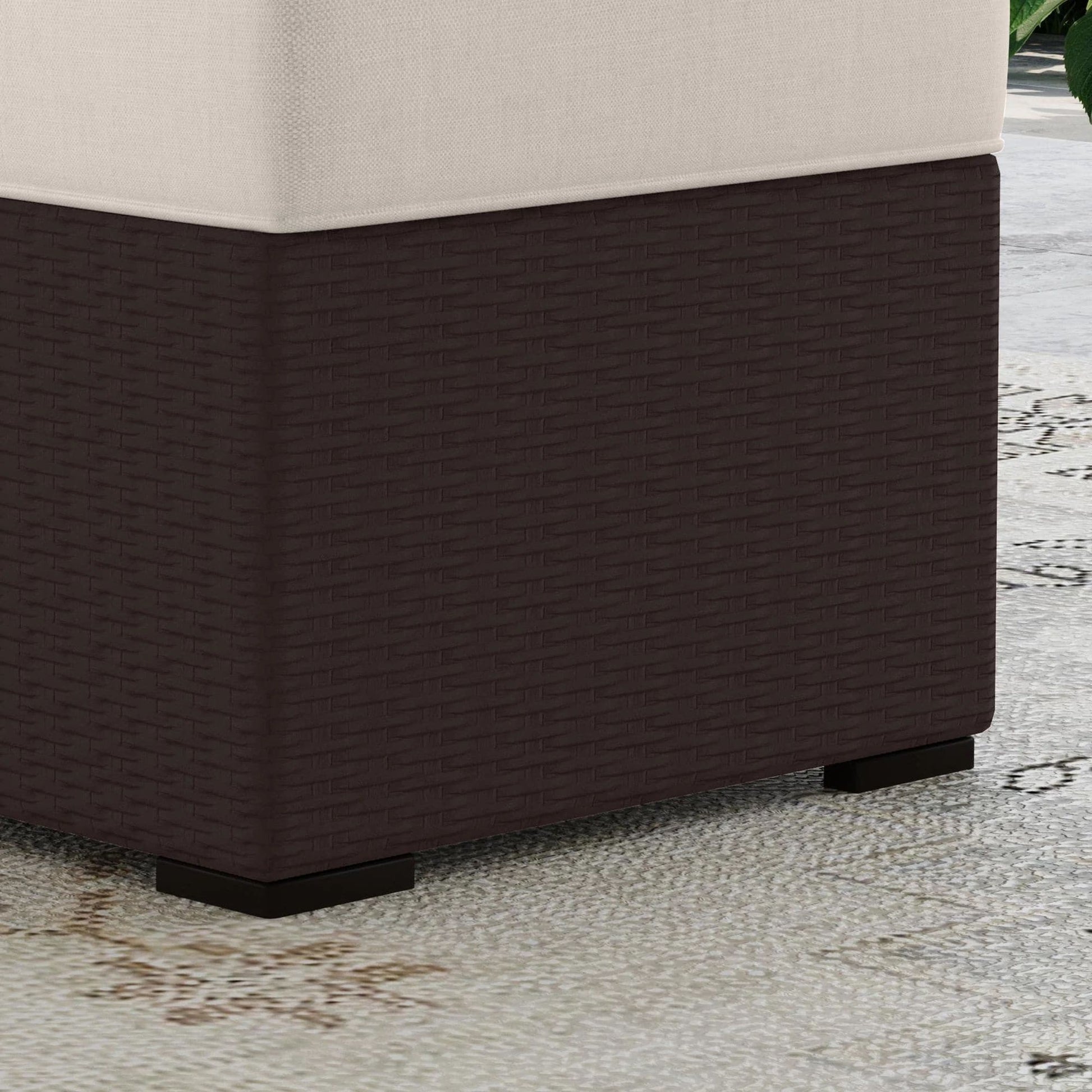 Dark brown, synthetic rattan is handwoven and weather-resistant