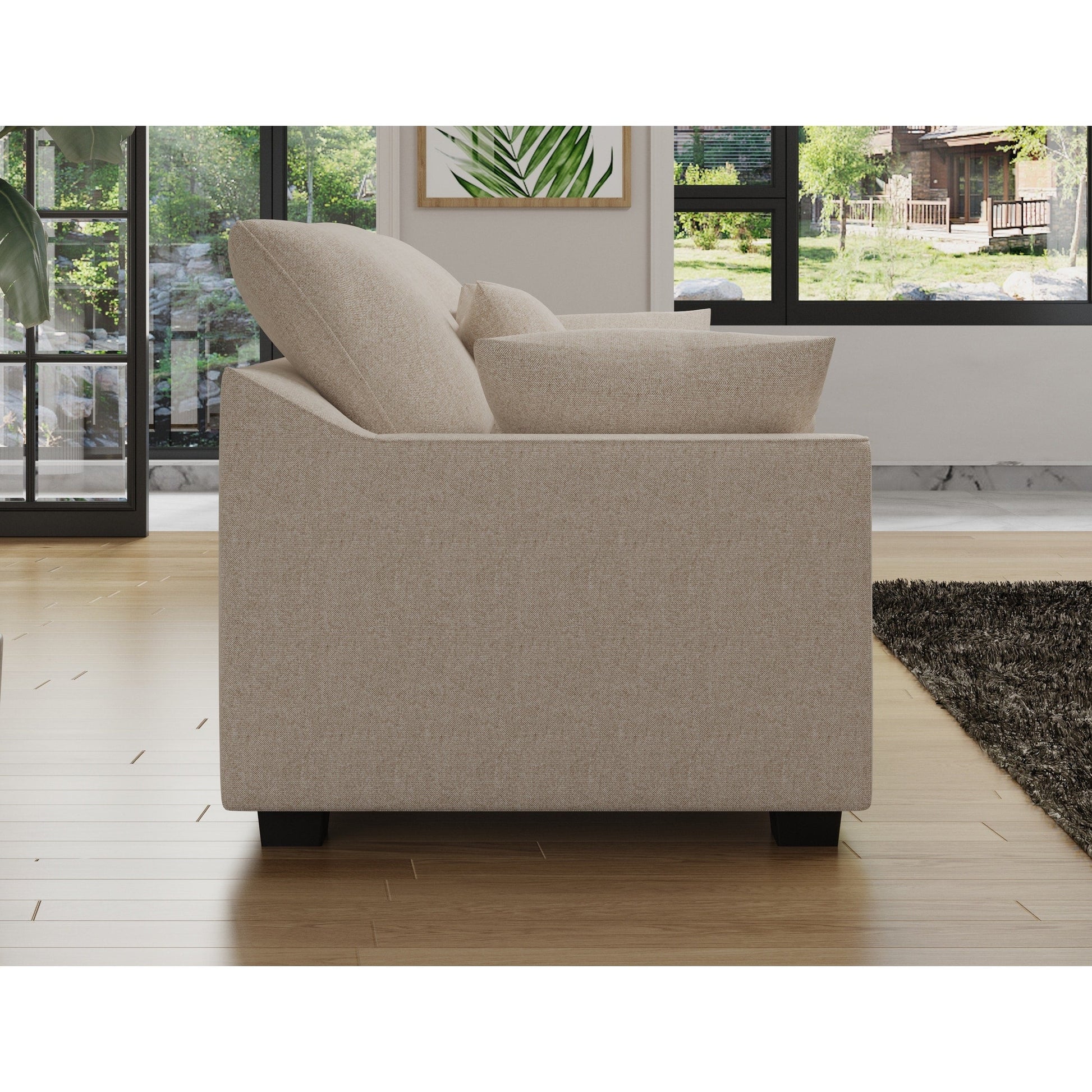 • High Quality Materials: The sofa is made of high-performance fabric with 100% polyester composition. The movable back cushions are filled with soft polyester, and the cushion is supported by spring pockets inside, which increases the elasticity and comfort of the sofa. The sofa legs are made of solid wood.