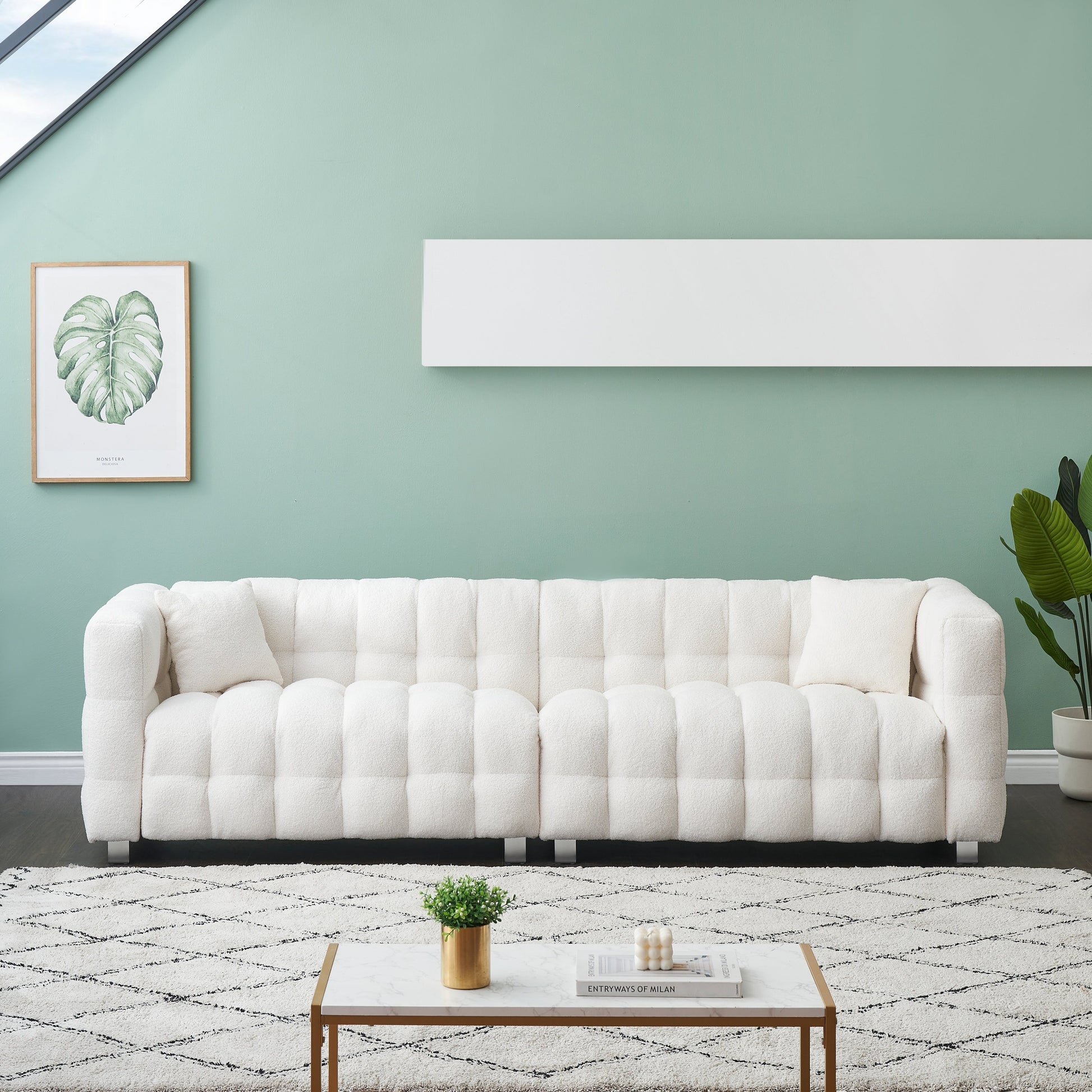 Beige Teddy 4-Seat Sofa with Two Throw Pillows