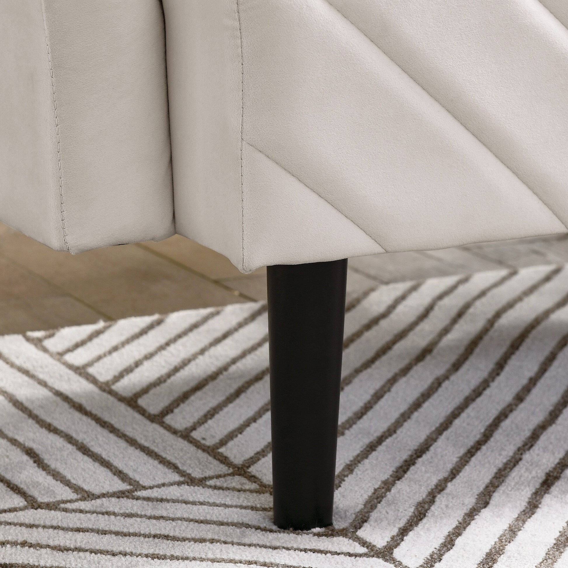 • Combining modern lines with mid-century modern details, such as chevron tufting and tapered plastic legs, this piece features a timeless design that adds style to any decor.