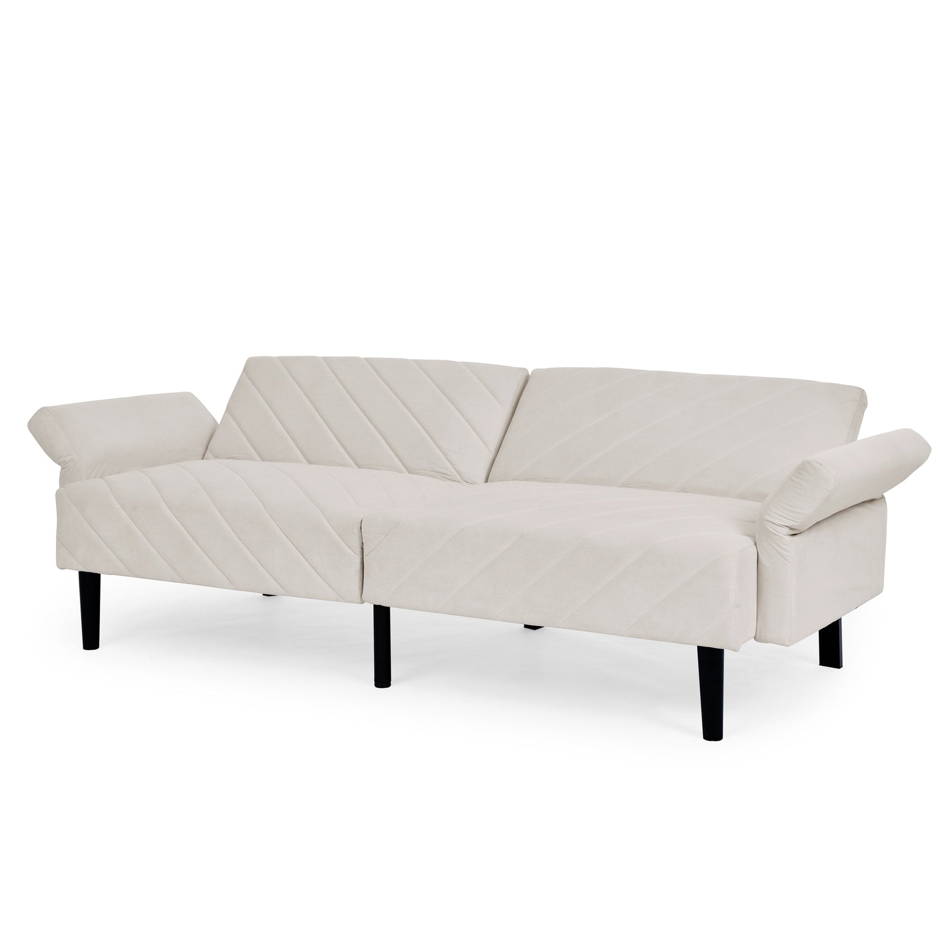 Beige Velvet Tufted Convertible Futon Sofa Bed