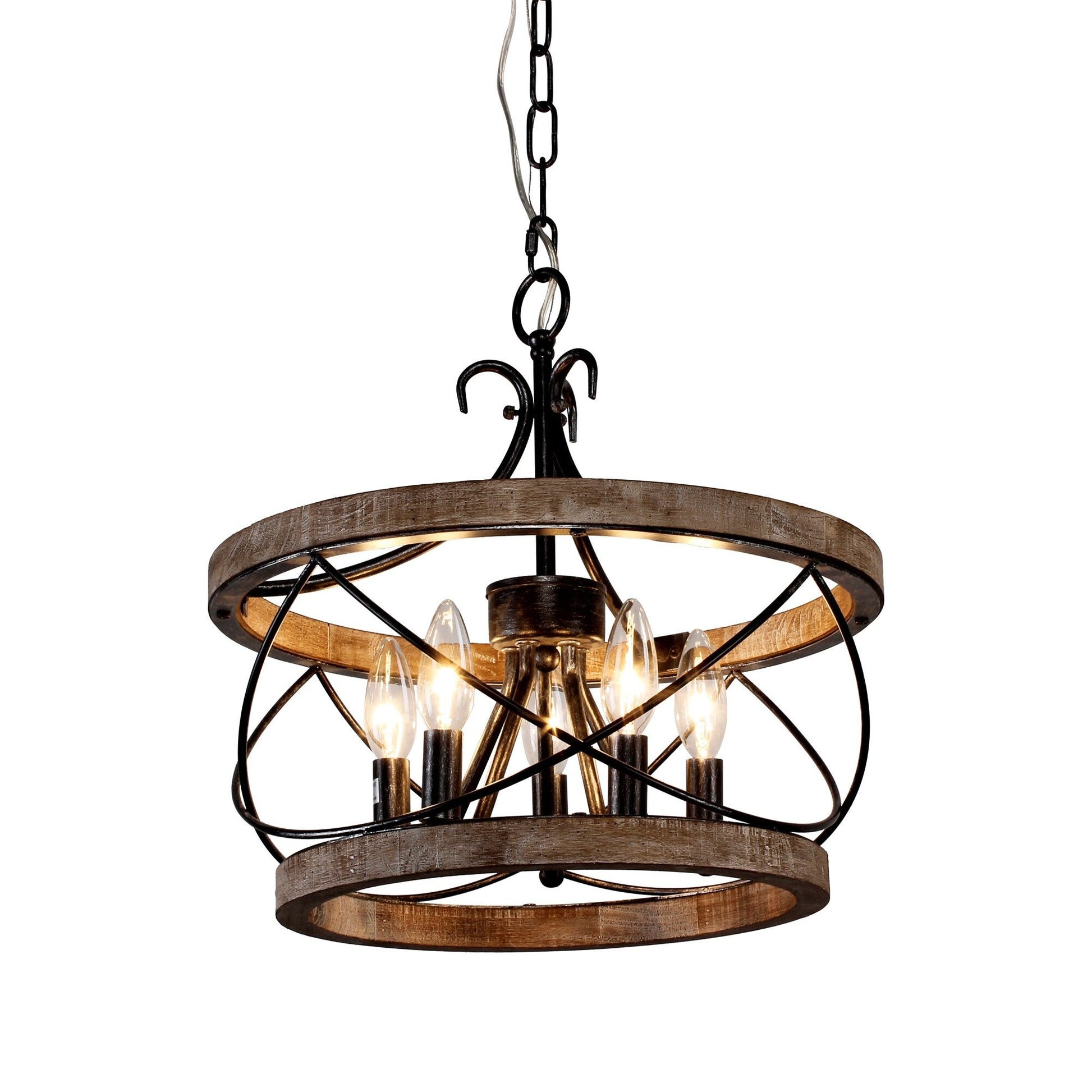 Bella Depot 5-Light Rustic Cage Wood Chandelier Dimmable...