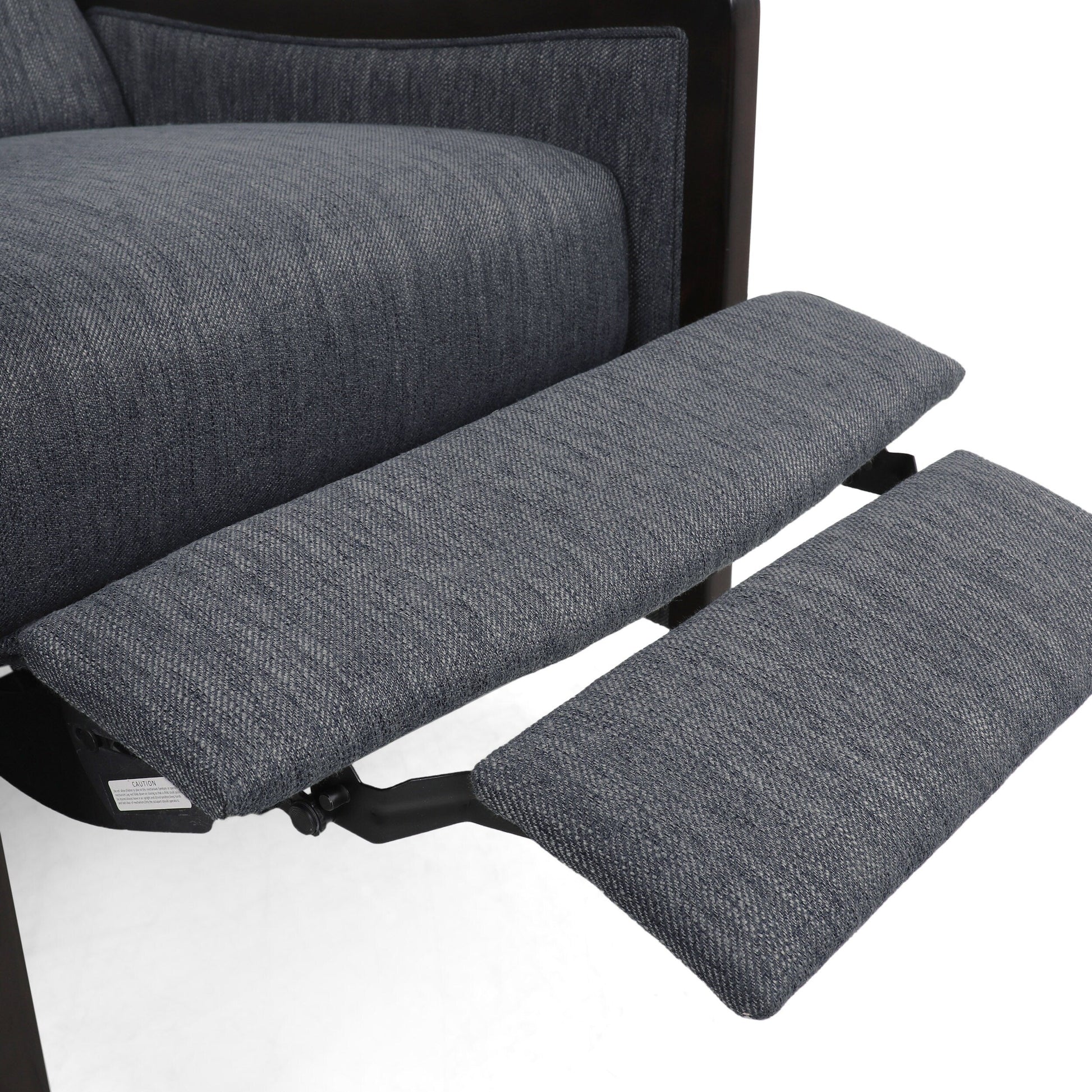 Charcoal Mid-Century Upholstered Push-Back Recliner with Footrest and Birch Wood Frame