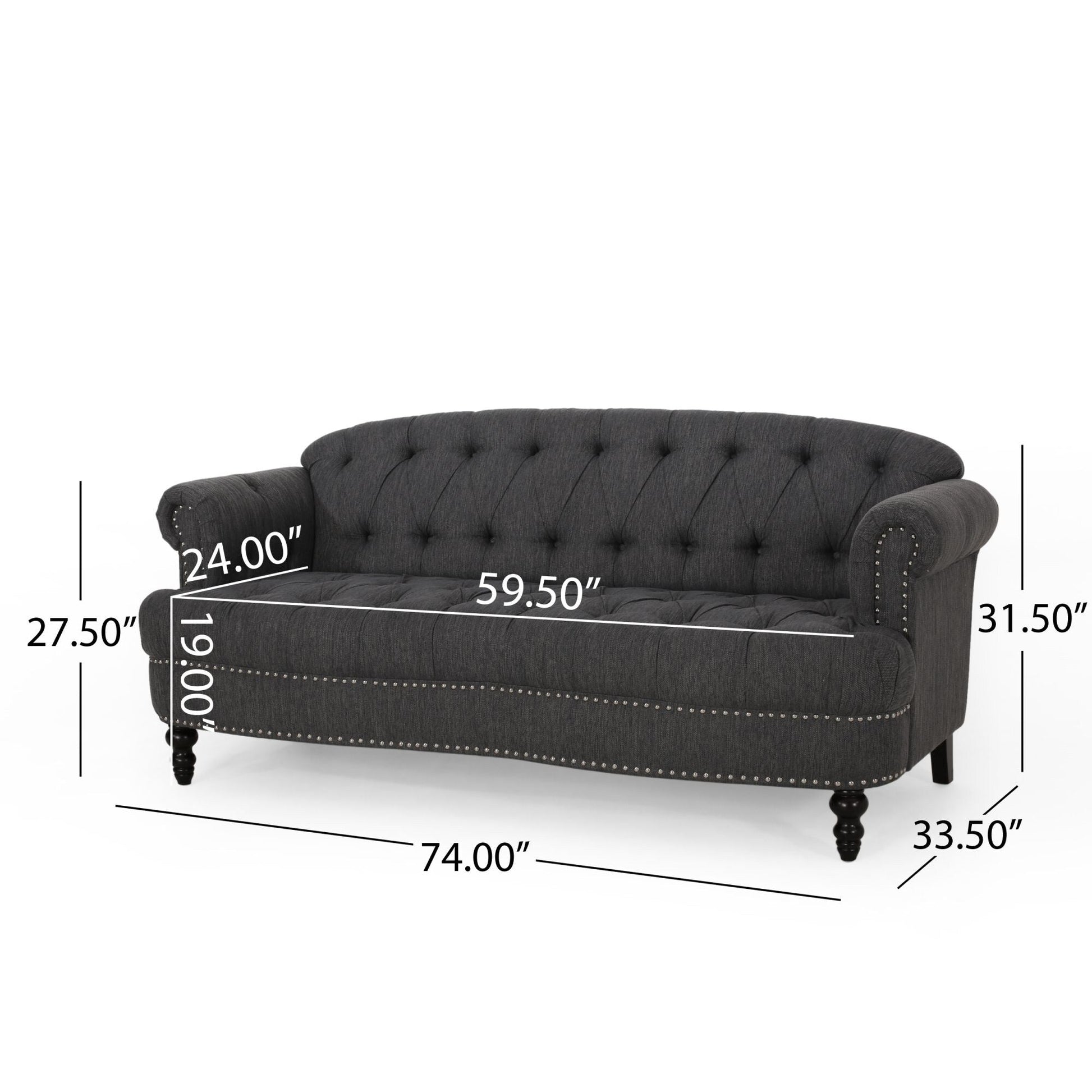Charcoal Tufted 3-seater Sofa with Nailhead and Wood...