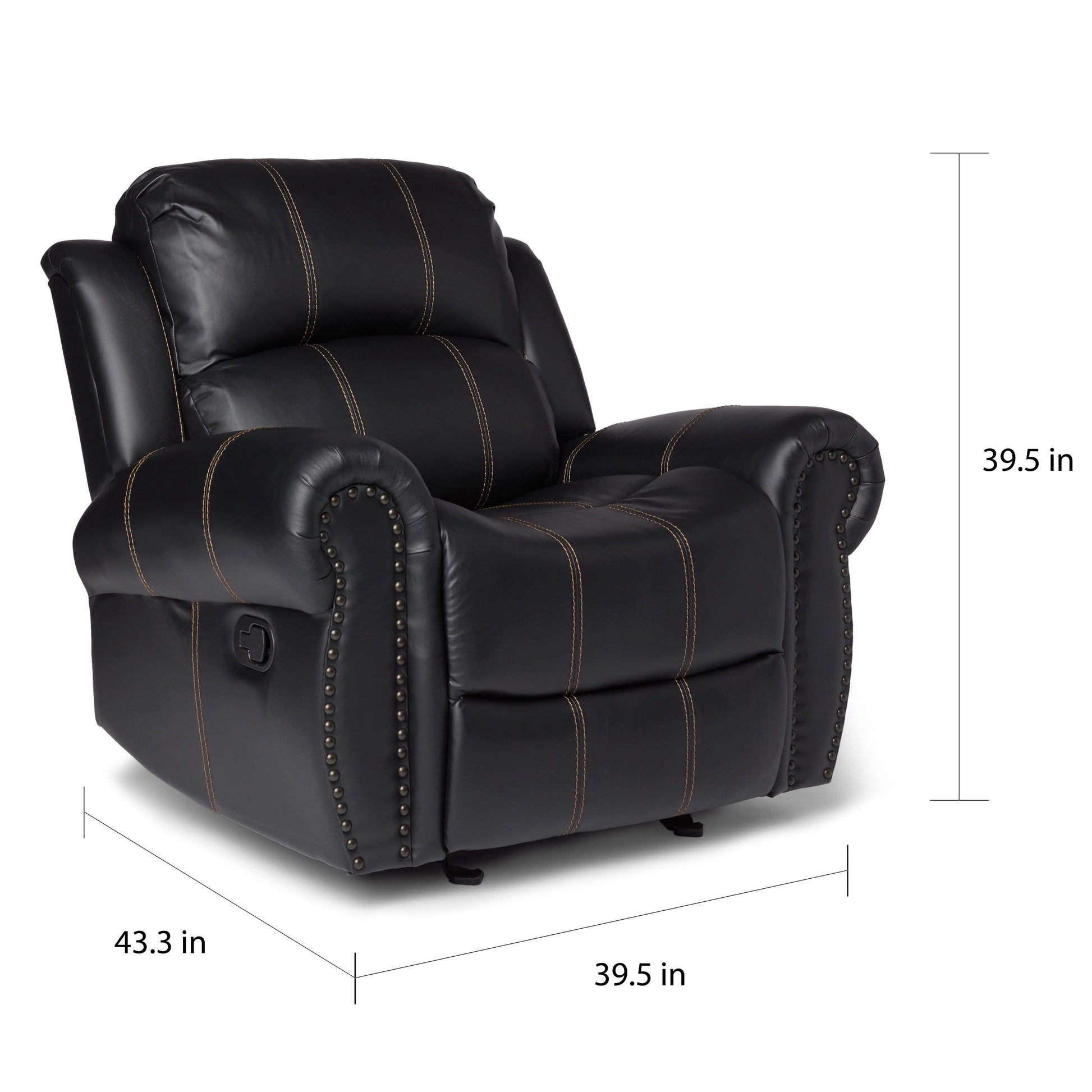 Sink into relaxation with the Charlie PU Leather Glider Recliner Club Chair by Christopher Knight Home. Its thick, plush cushions and reclining function make it the perfect spot to unwind after a long day. The faux leather upholstery and contrast stitching add a touch of traditional elegance that complements any decor.
