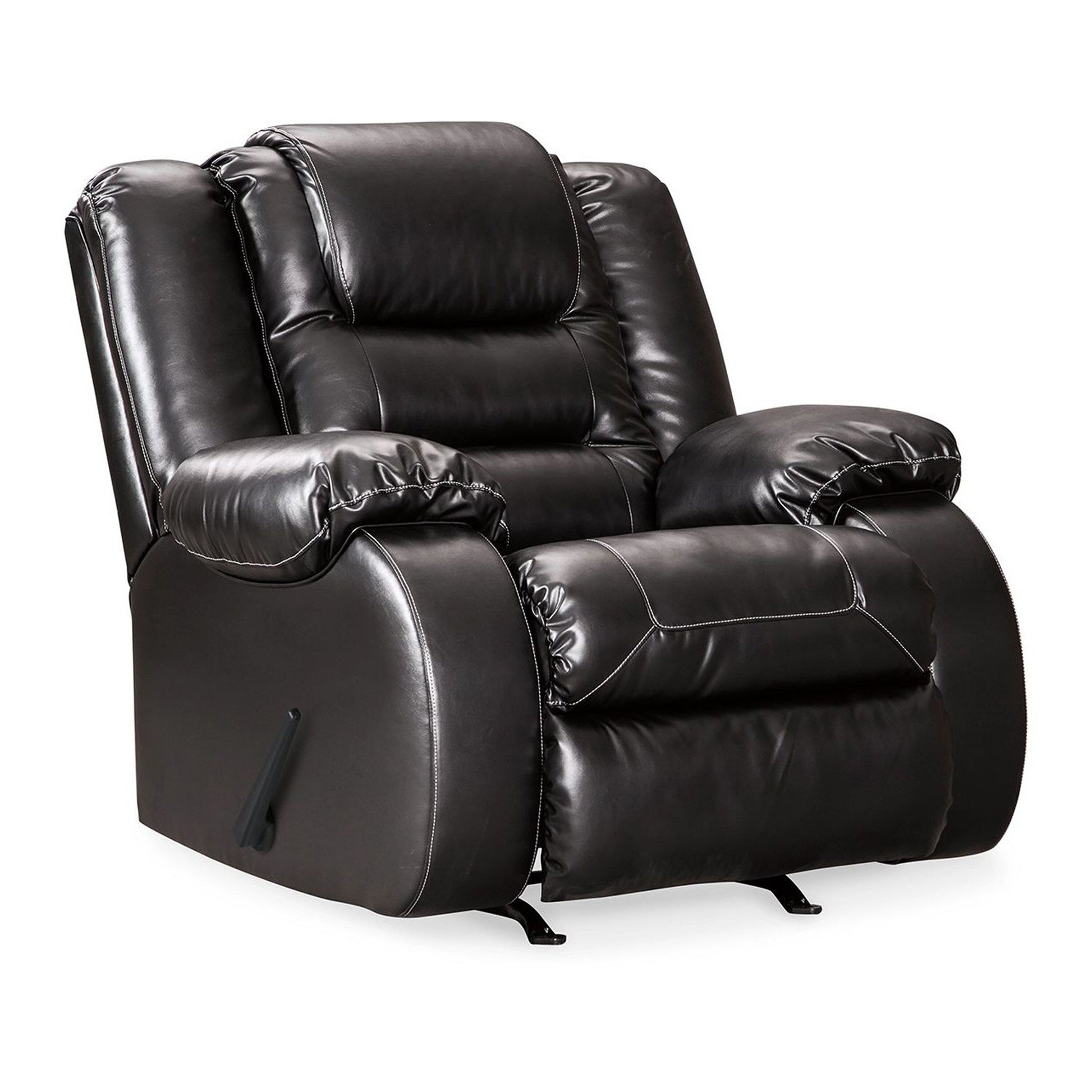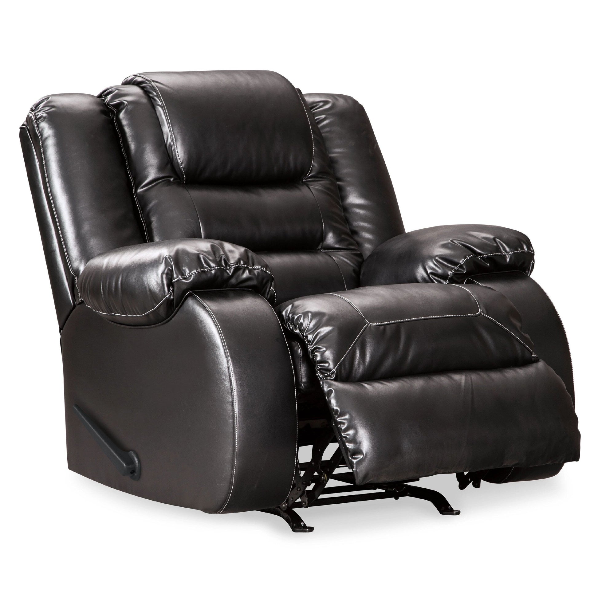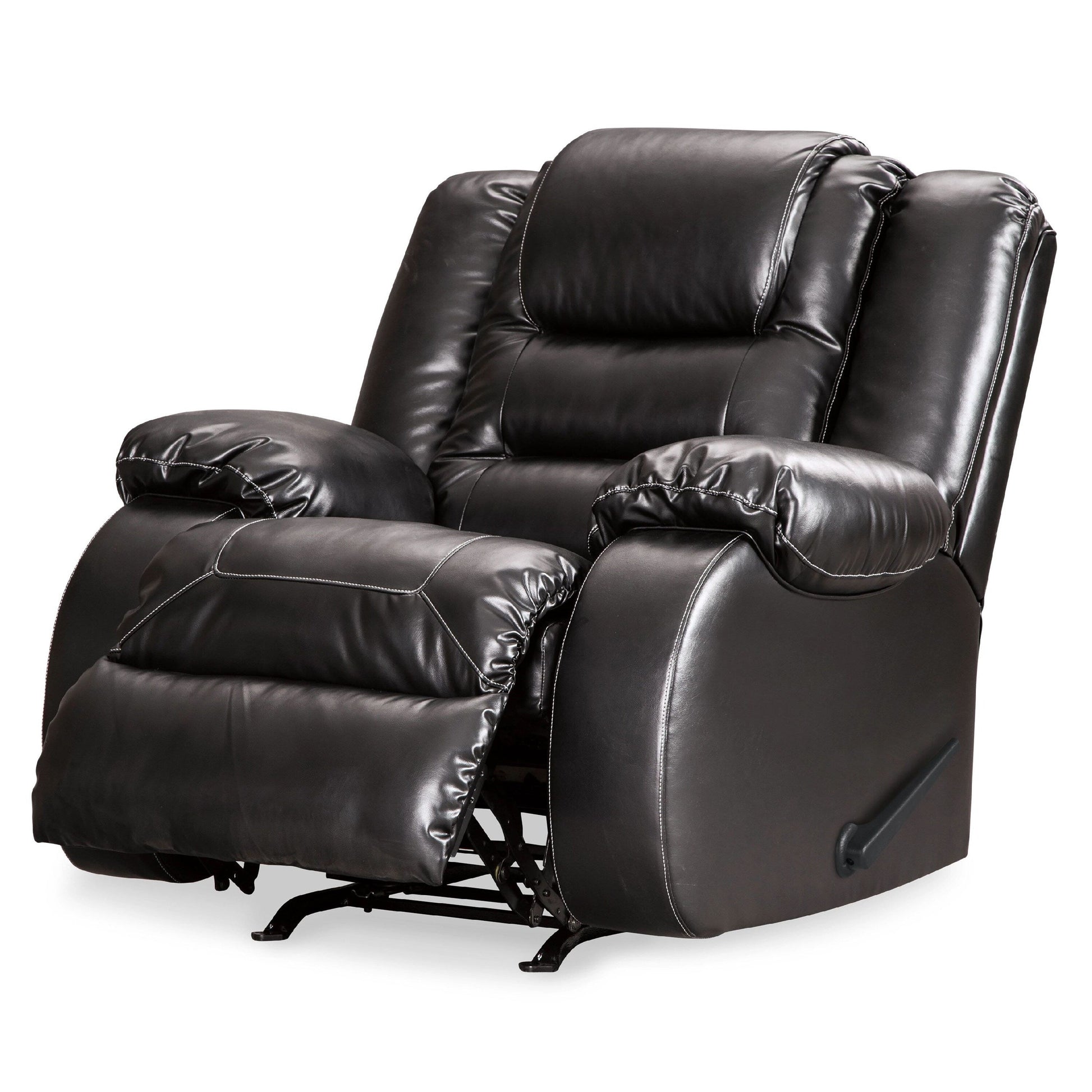 Cherie Manual Rocker Recliner Chair, Plush Glossy Black Faux Leather