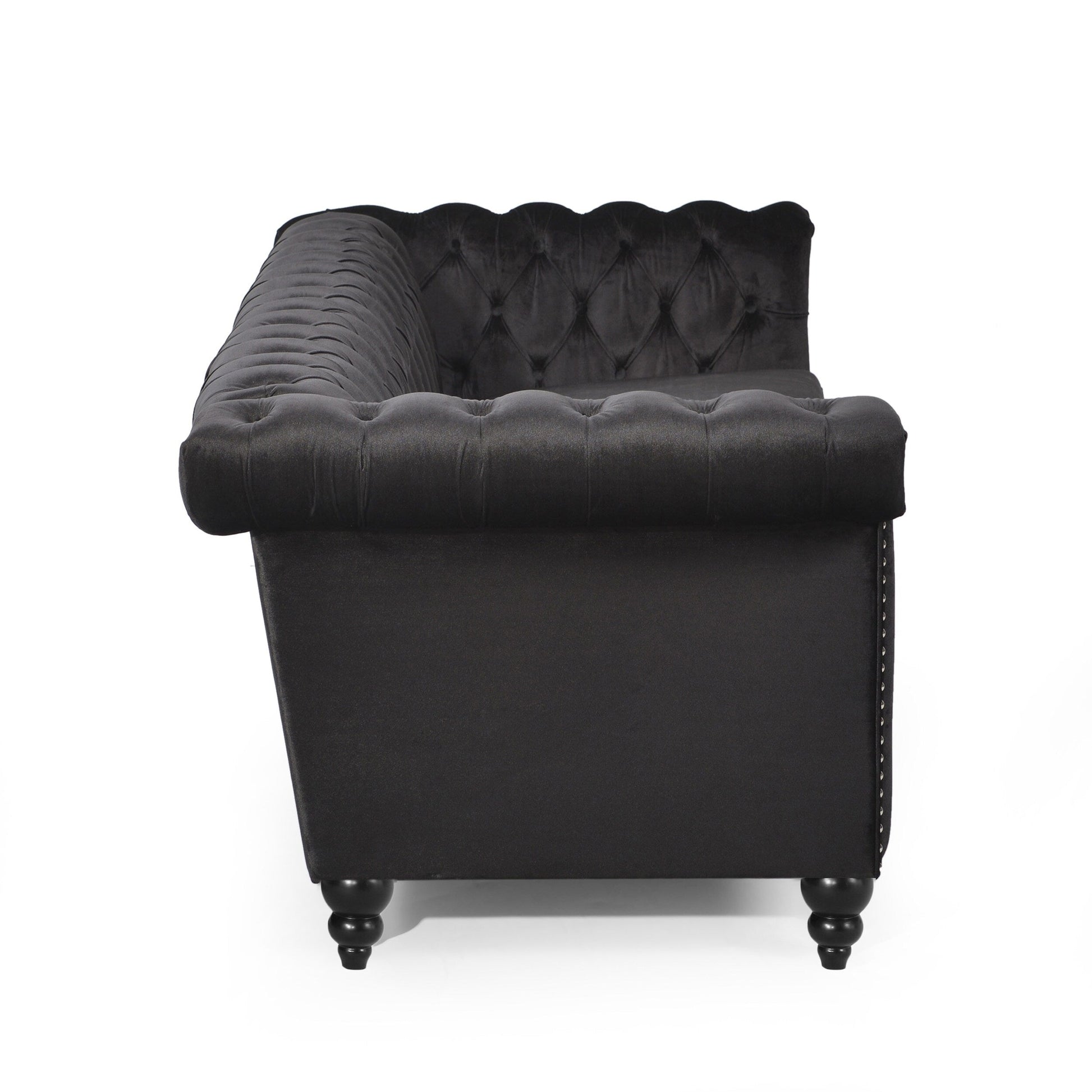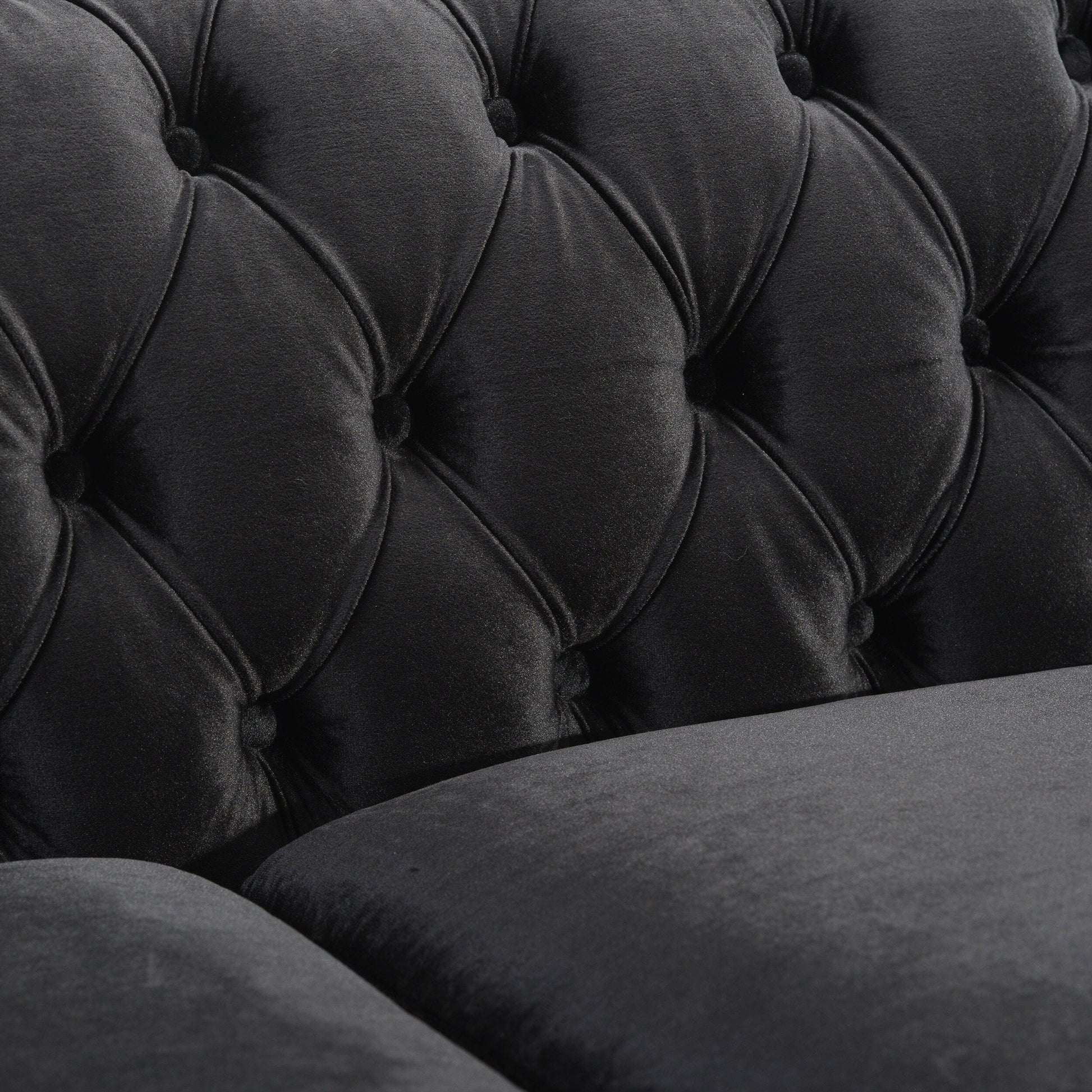 • SQUARE ARMS: With a modern twist to a traditional Chesterfield look, this sofa features stylish square arms.