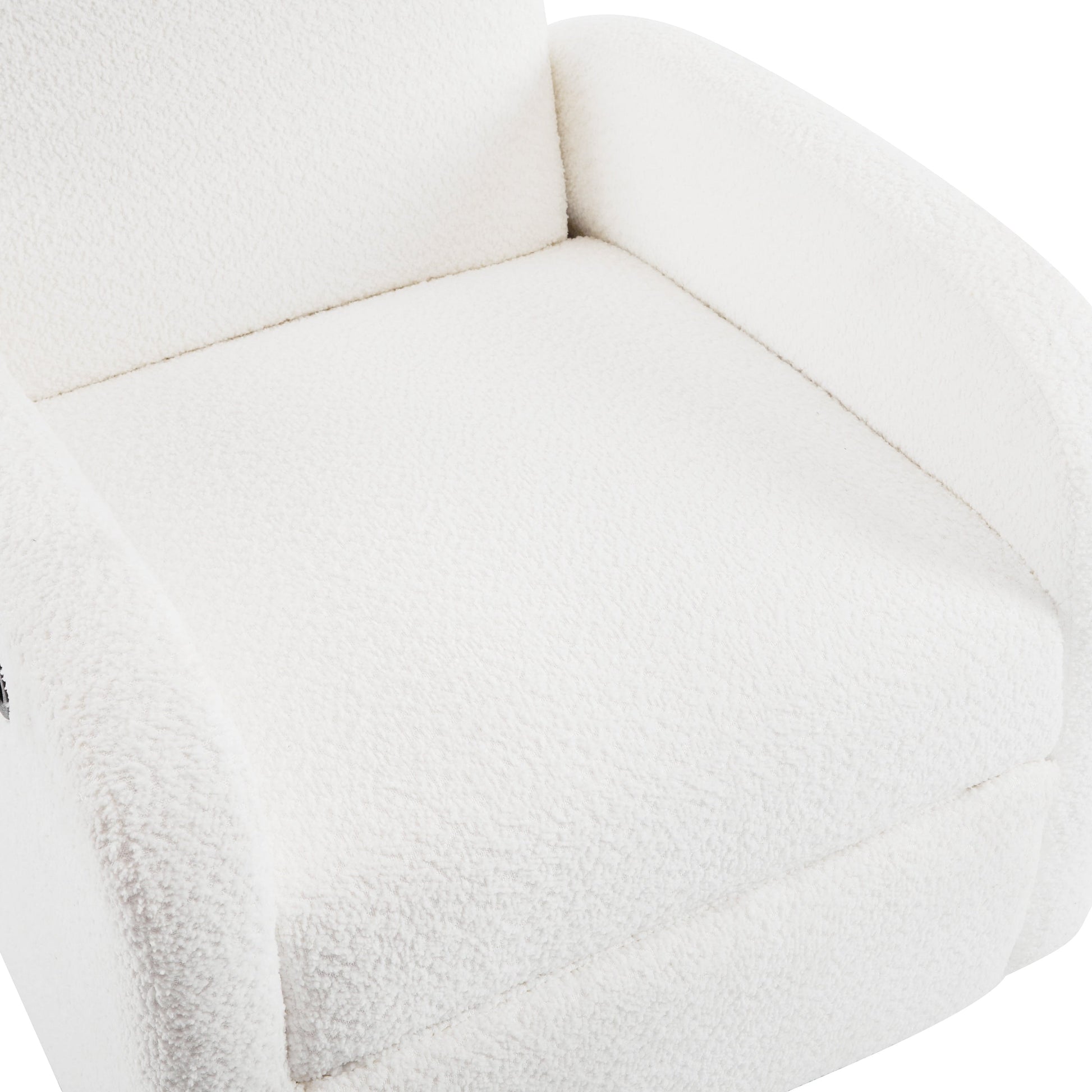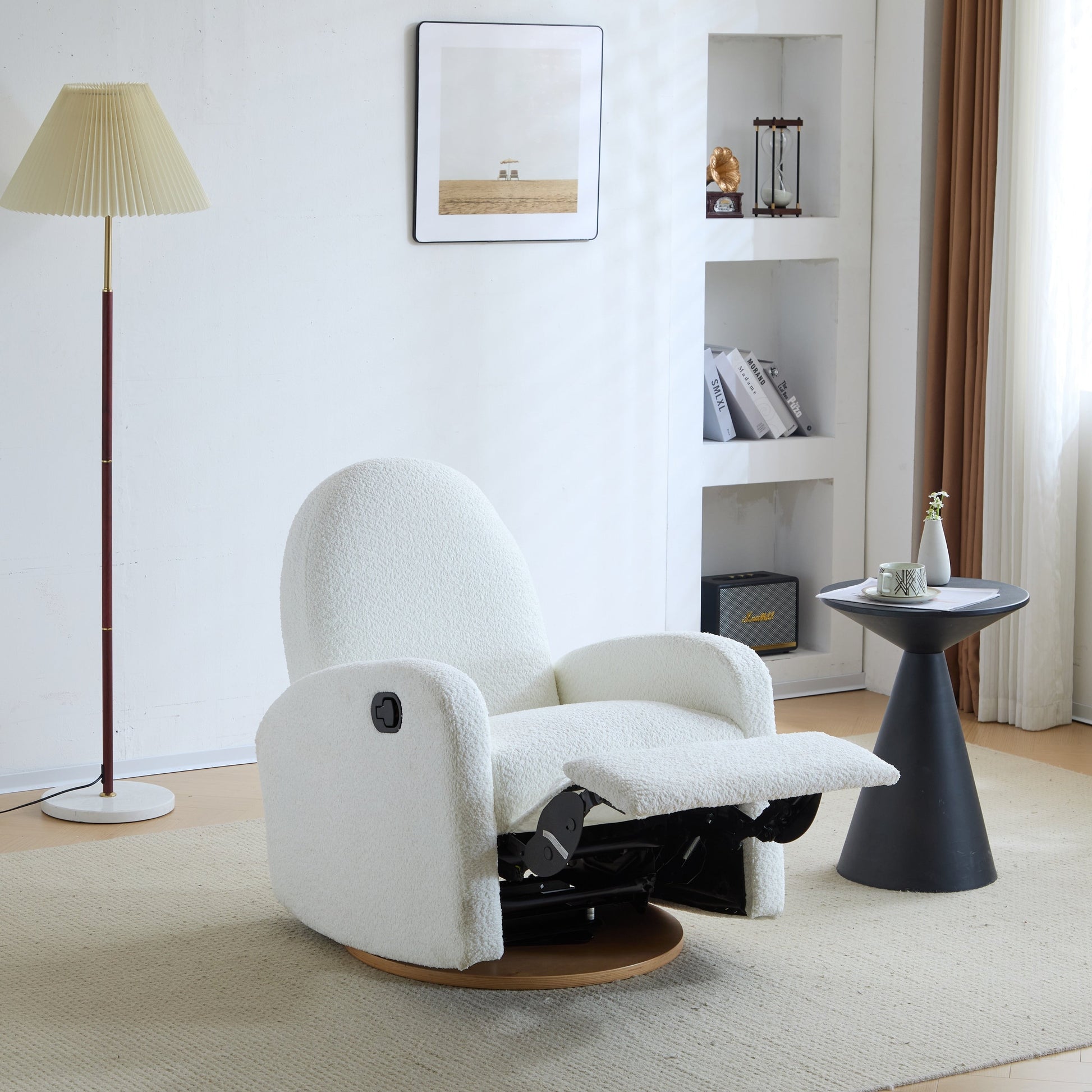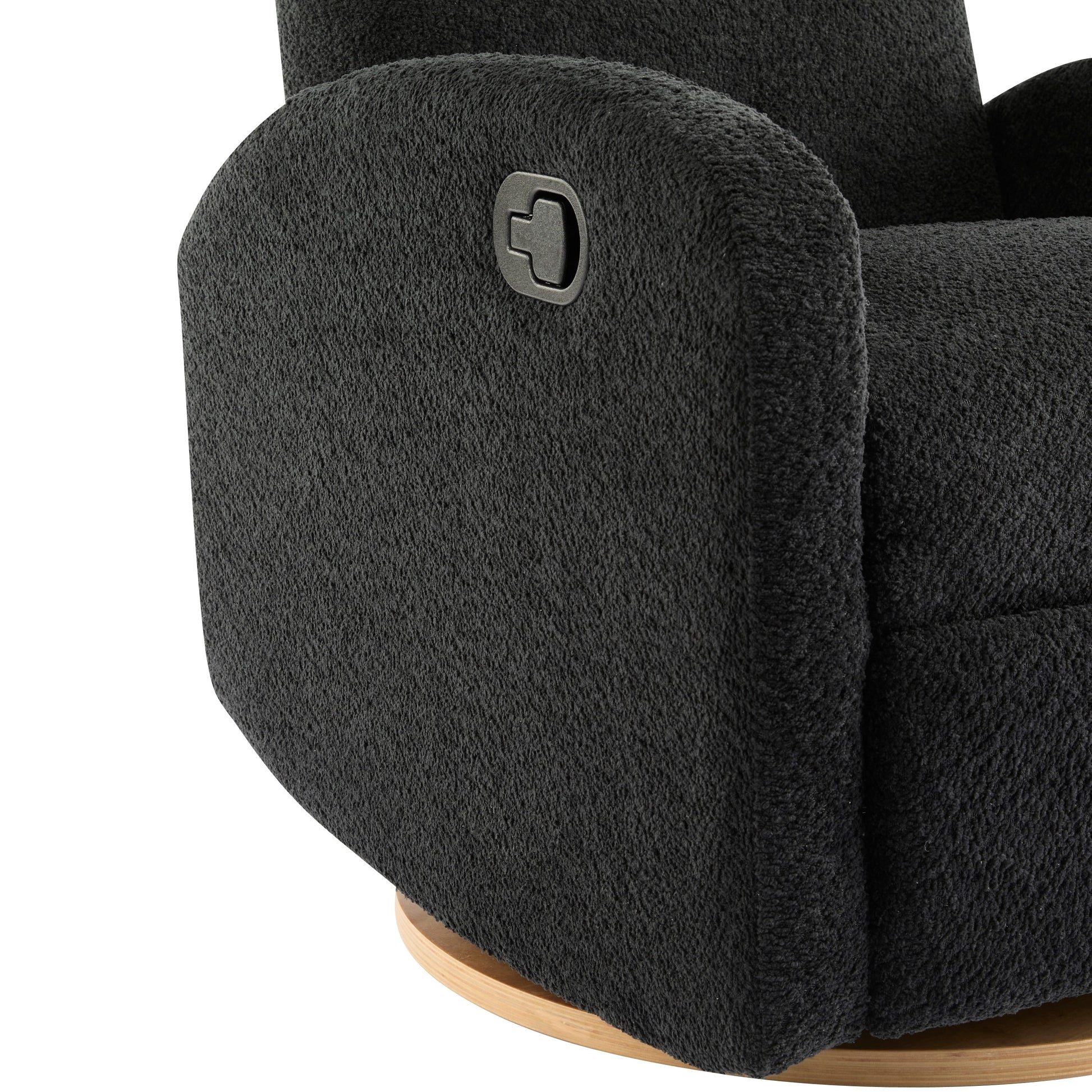 Experience the perfect blend of modern elegance and comfort with this stunning recliner. Its sleek design enhances your living space while serving as a captivating statement piece. Enjoy ultimate relaxation with the smooth glider function, and let the 360-degree swivel and gentle rocking motion invite you to unwind effortlessly. Built on a solid wood base for durability, this chair ensures stability for years to come. With easy assembly, you'll soon find your new favorite spot to savor moments of peace and tranquility.