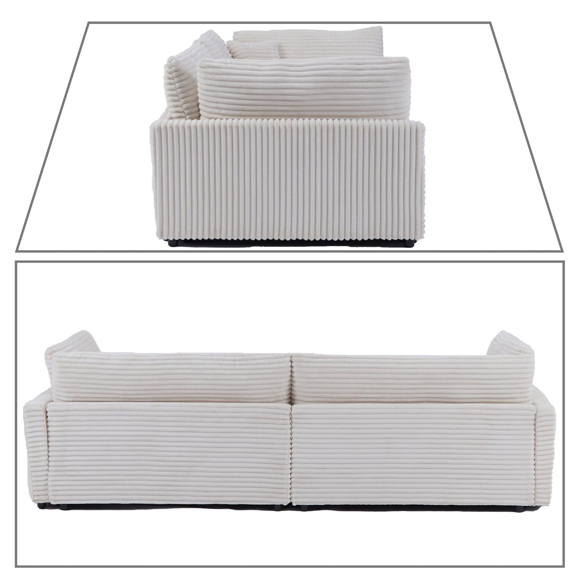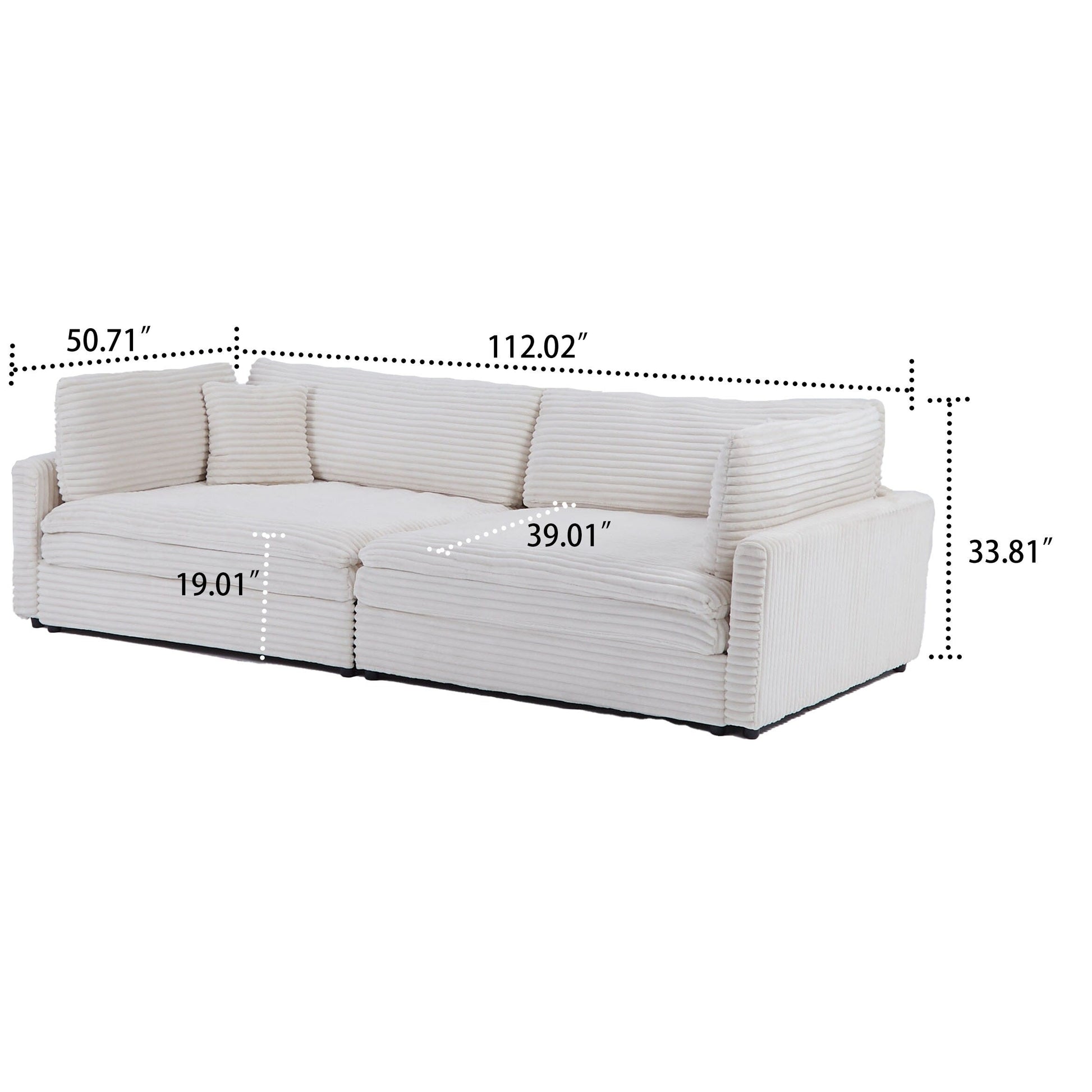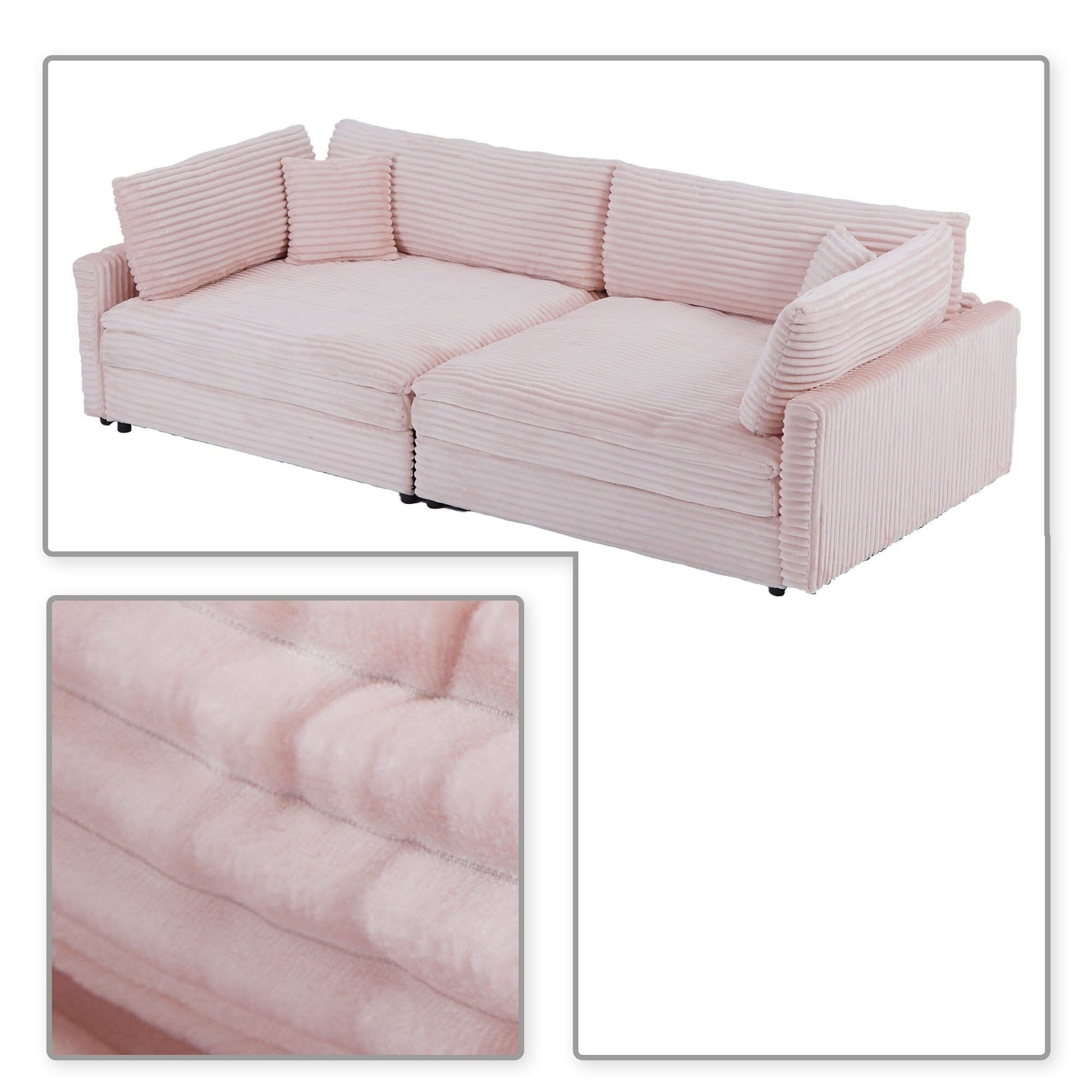 Add timeless elegance and supreme comfort to your home with this corduroy upholstered three-seater sofa. Designed with a chic, contemporary silhouette and plush double-layer cushioning, this sofa offers superior support and softness in one. Its wide, deep seat invites you to lounge in style, while two included throw pillows enhance the cozy, curated look. Perfectly suited for both compact apartments and spacious living rooms, this versatile piece blends effortlessly into any modern or transitional décor scheme.