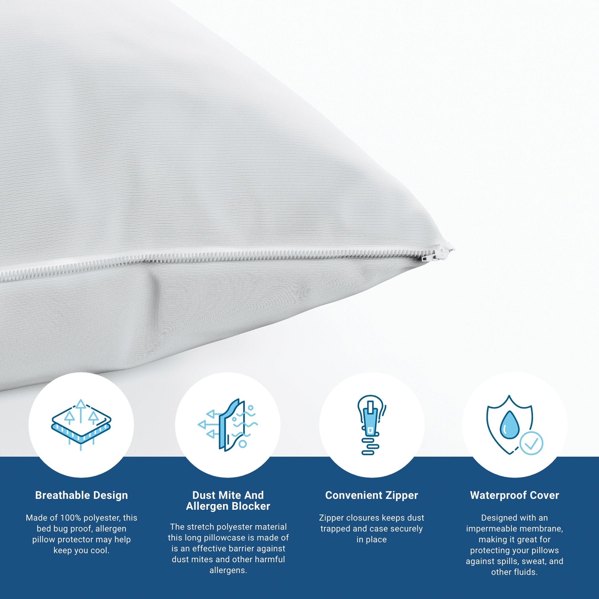 The stretch polyester material this long pillowcase is made of is an effective barrier against dust mites and other harmful allergens.
