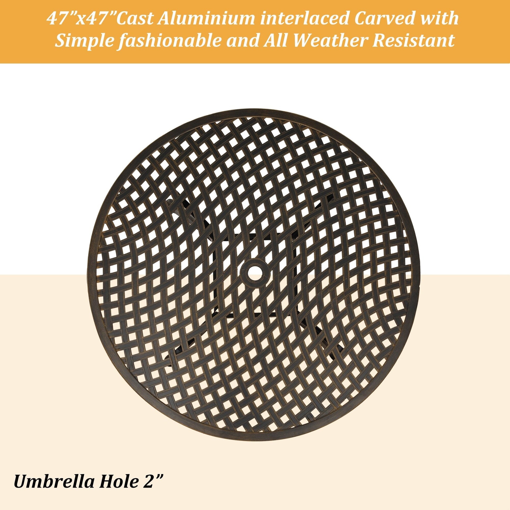 • Premium Quality: Crafted from solid cast aluminum, this patio dining set ensures rust-free durability throughout its service life. Enjoy its high-quality structure and long-lasting performance.
