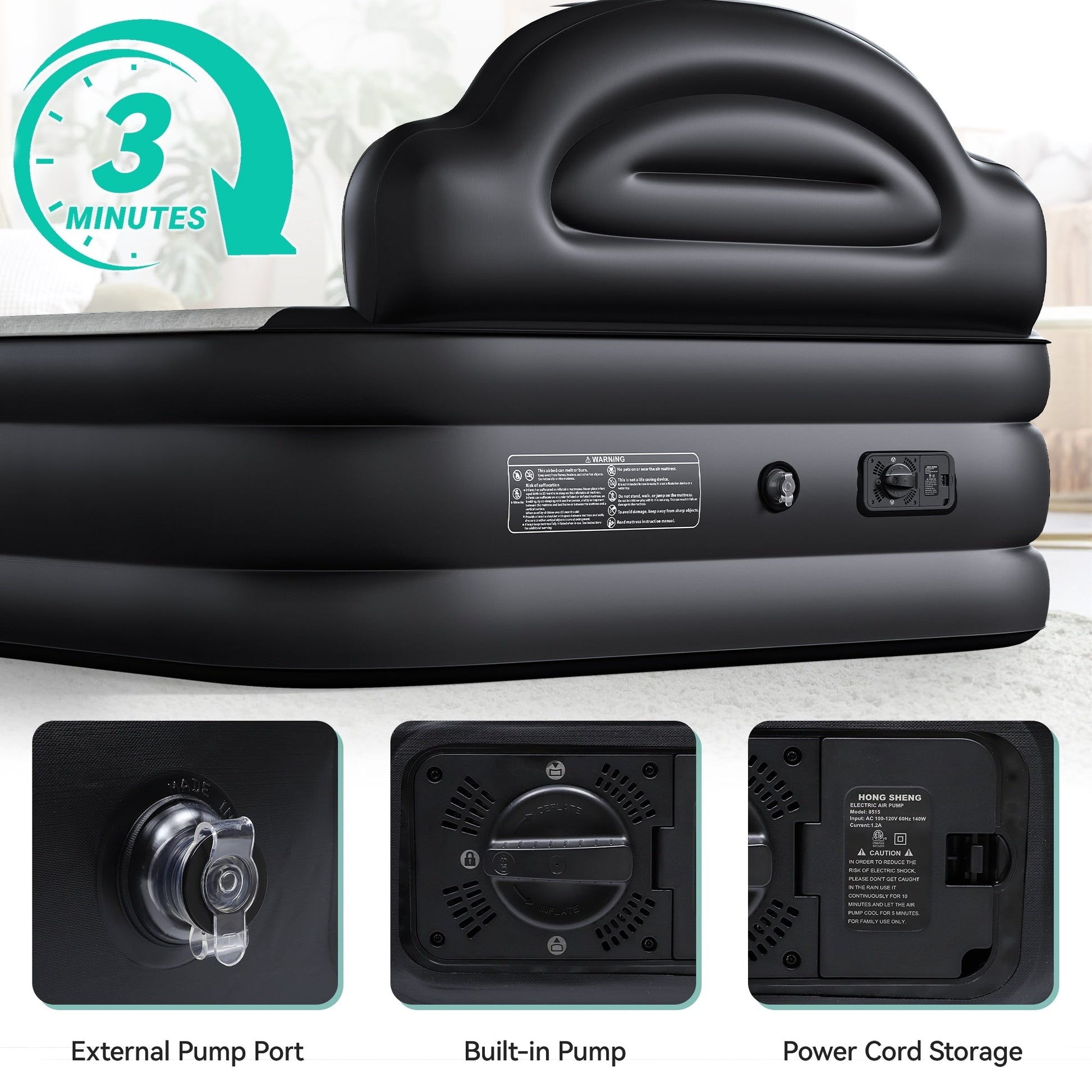 • Upgraded Integrated Headboard: Experience enhanced comfort with our air mattress with headboard featuring an integrated headboard. This unique design provides optimal support for your head, neck, back, and waist when sitting up. It also serves to prevent pillows from falling and safeguards against phones dropping into the gap between the headrest and the air bed