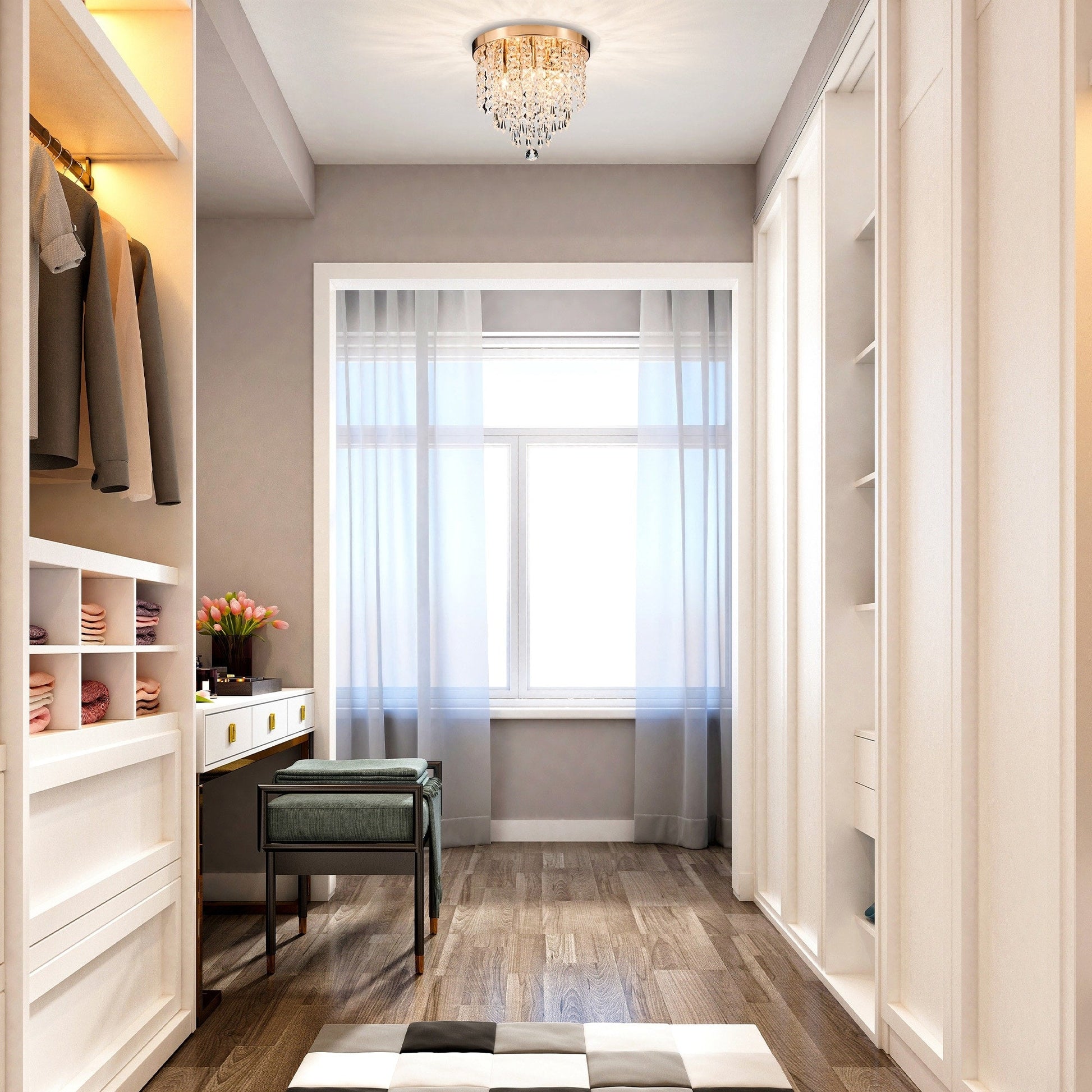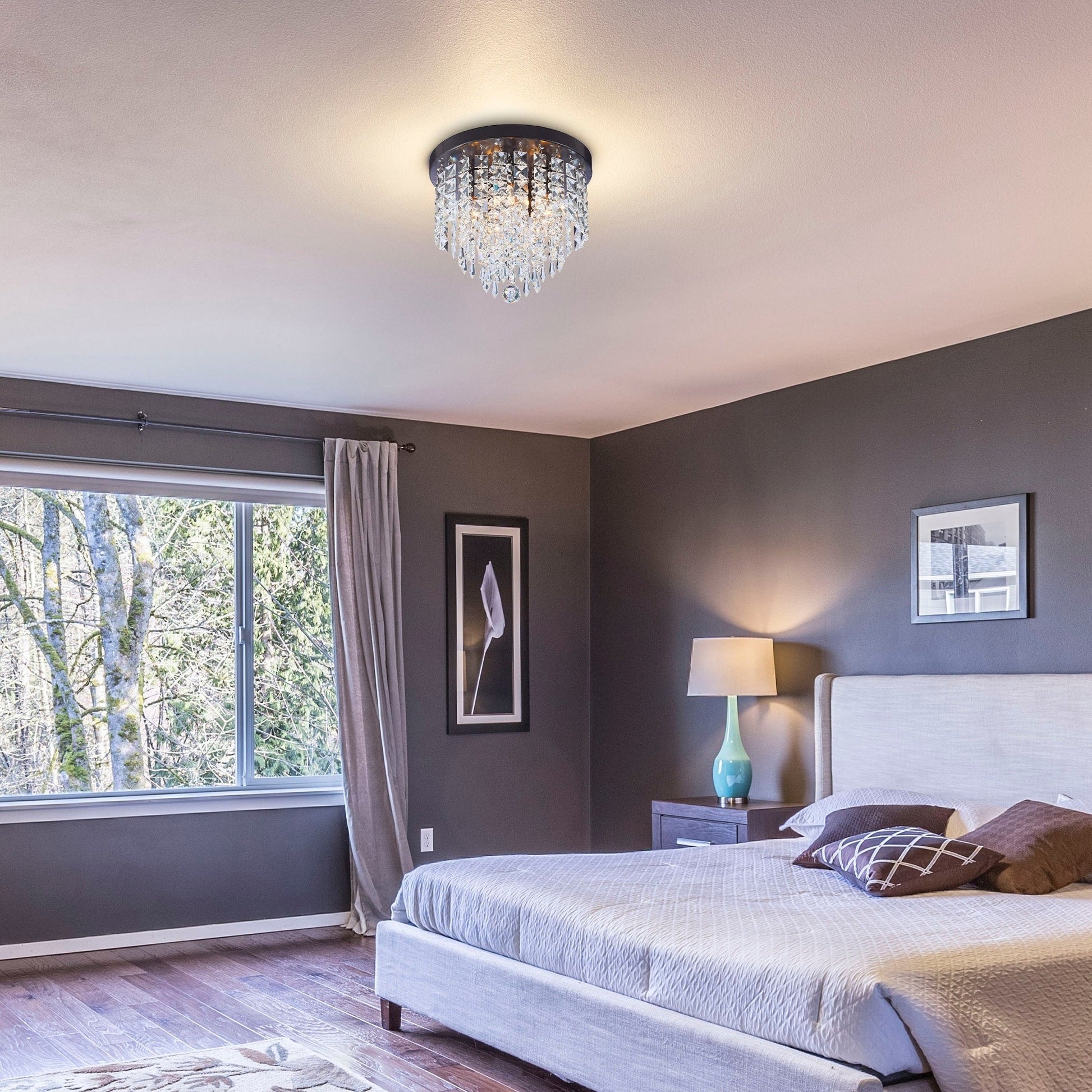 Bring a touch of timeless elegance to your home with our CO-Z 11' 5-light flush mount crystal chandelier ceiling light. Radiating glamour reminiscent of the Roaring Twenties, this chandelier boasts five bulbs nestled inside a glittering crystal-bead shade, creating a delightful glow that elevates any room's ambiance. Whether your home decor is rustic or modern, this classic design effortlessly compliments any style. With dimmer compatibility, you can adjust the lighting to match any mood or occasion.