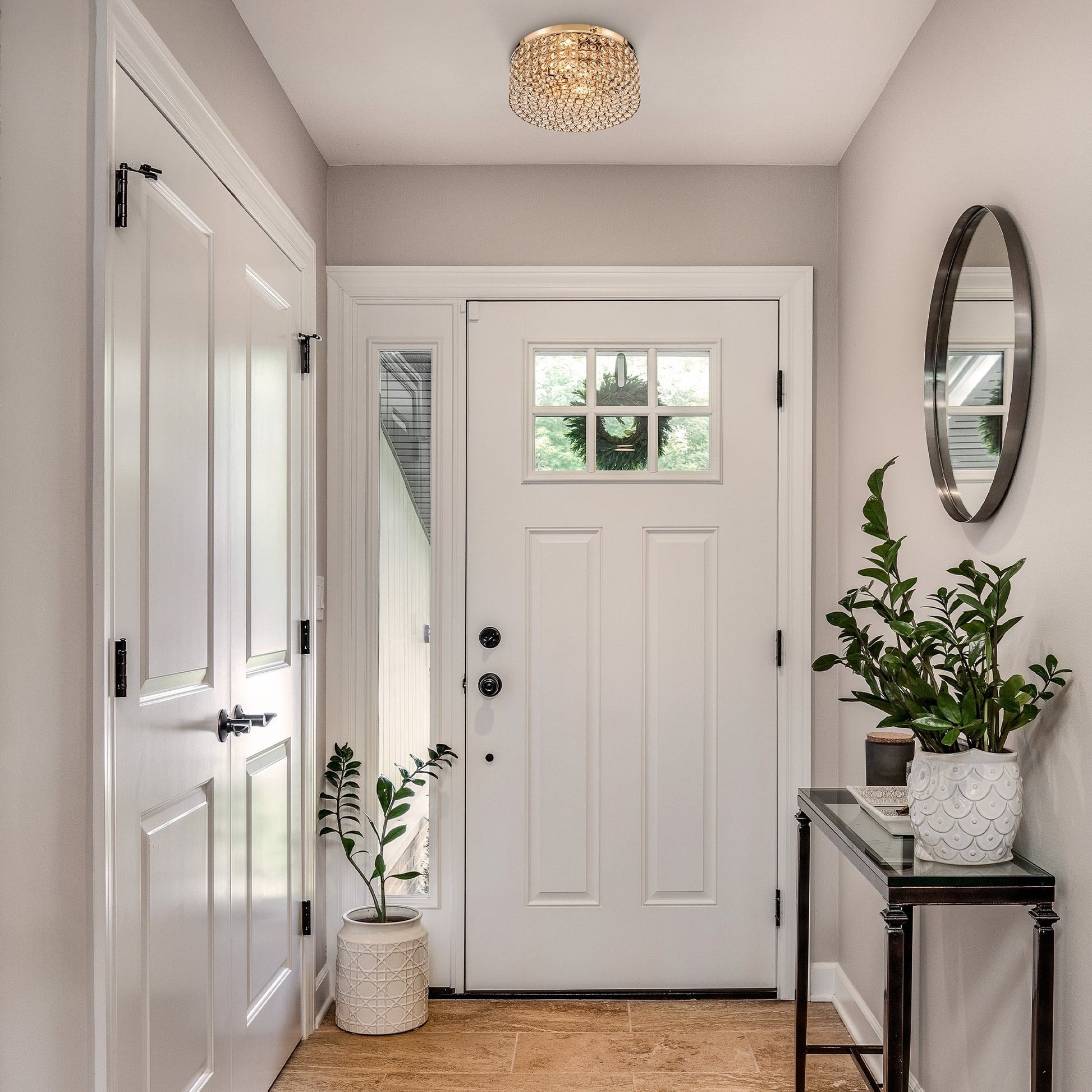 Add a touch of elegance to any room with the CO-Z Modern 2-Light Round Crystal Flush Mount Ceiling Light in Chrome. The clear crystal beads and chrome finish provide a luxurious shine that is perfect for dressing up any space. With the ability to use CFL, incandescent, or LED bulbs up to 40W, you can easily control the brightness and intensity of the light using a compatible dimmer switch. The drum shade is designed to enhance any room with any height ceiling without compromising space. This light fixture is durable and corrosion-proof, making it perfect for any home or office renovation project.