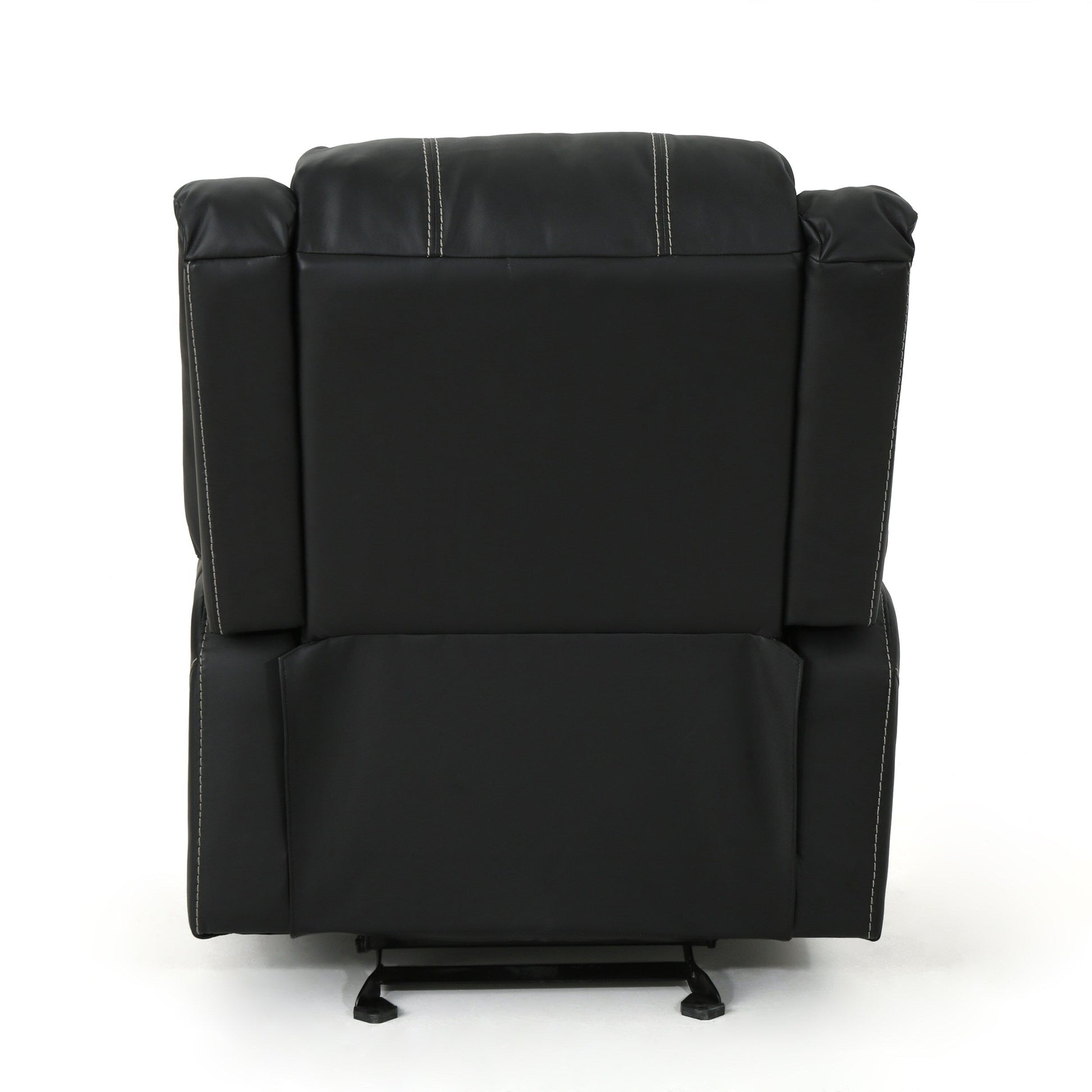• Contemporary Charm: Introducing our Manual Recliner, upholstered in sleek black PU leather. Its contemporary design and bold color make it a stylish addition to any living space, exuding sophistication and charm.