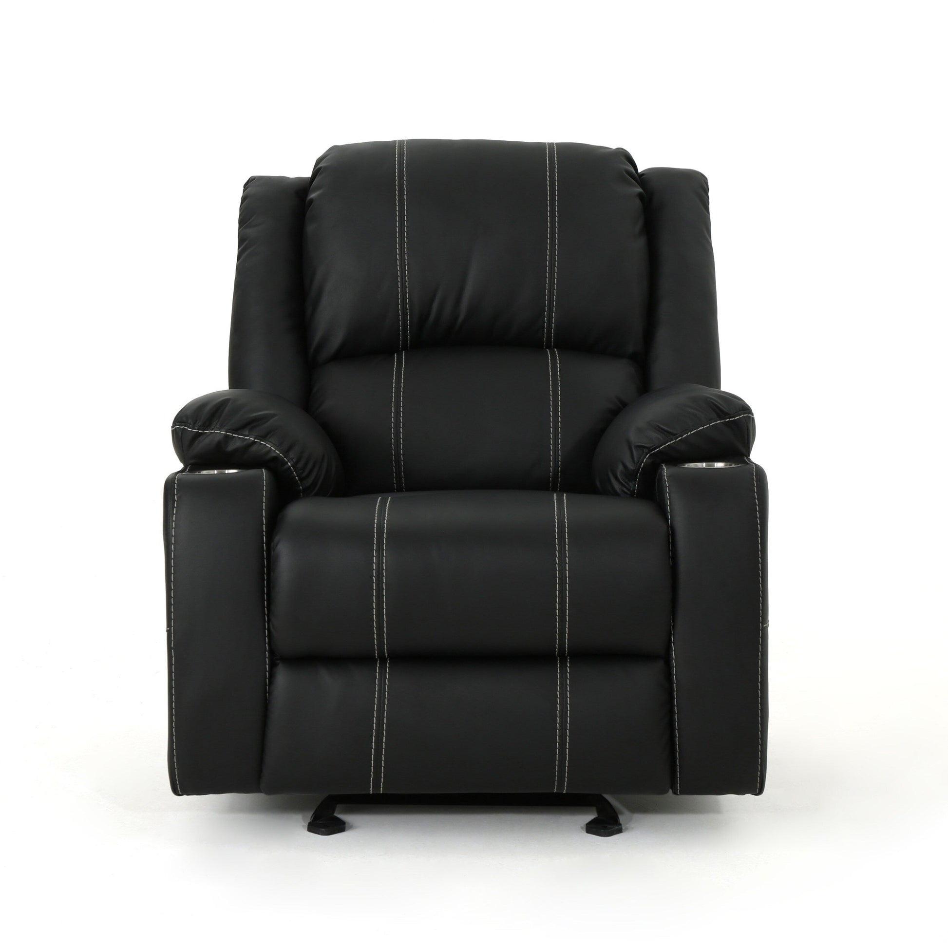 Contemporary Manual Recliner with Steel Cup Holders, Plush PU Leather, and Adjustable Recline