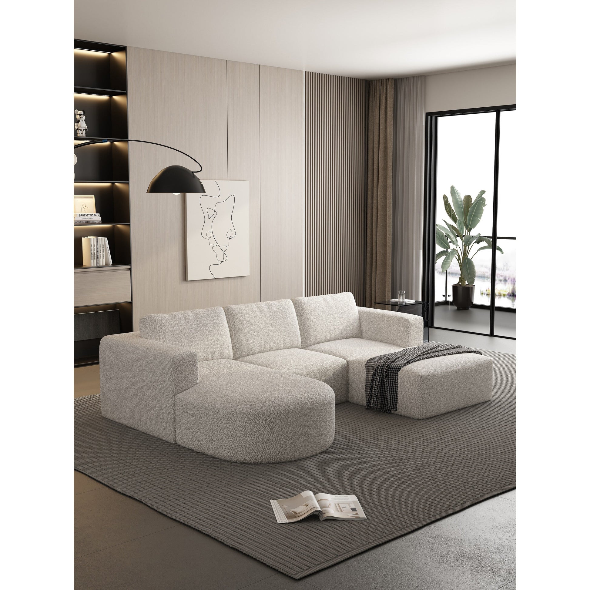 Convertible 104.32*70.86 U-Shaped Modular Sectional Sofa with Chaise, Ottoman, and Compressed Sponge for Living Room