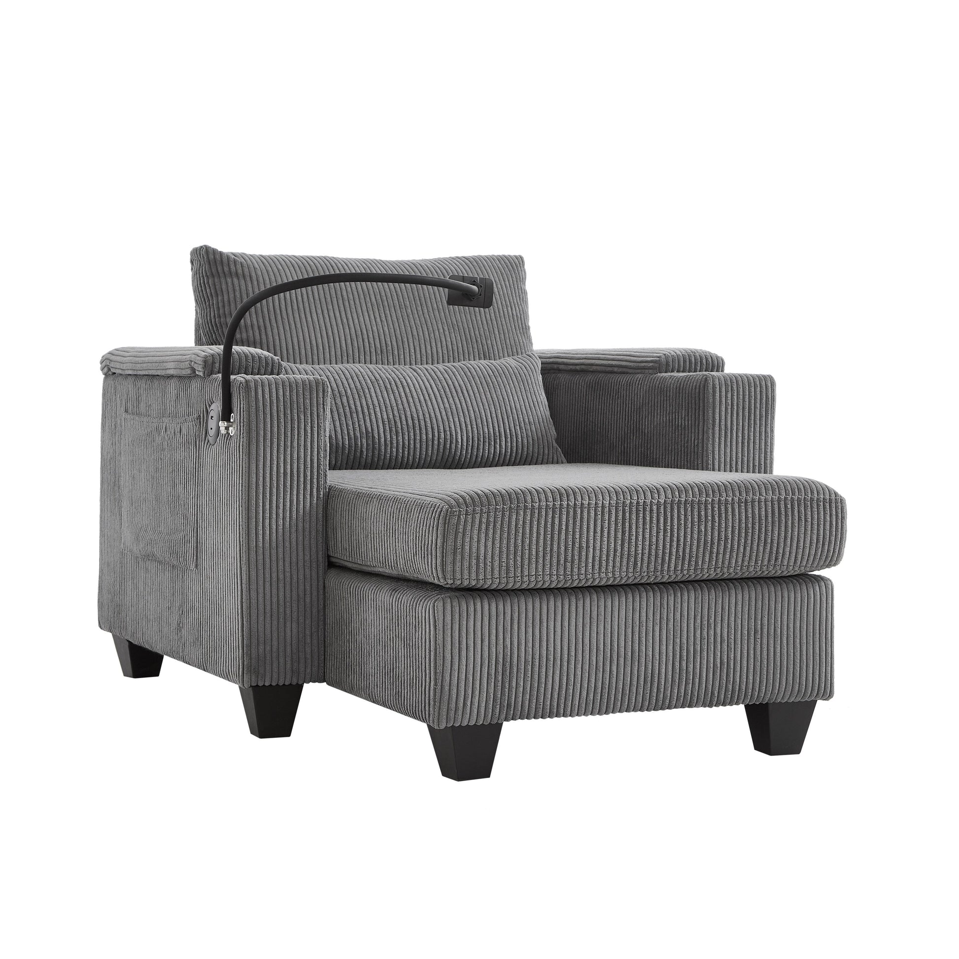 Convertible Chaise Lounge 37.4 Sofa Chair Sofa Bed Corduroy Sleeper Sofa with USB Ports, Two Cup Holders