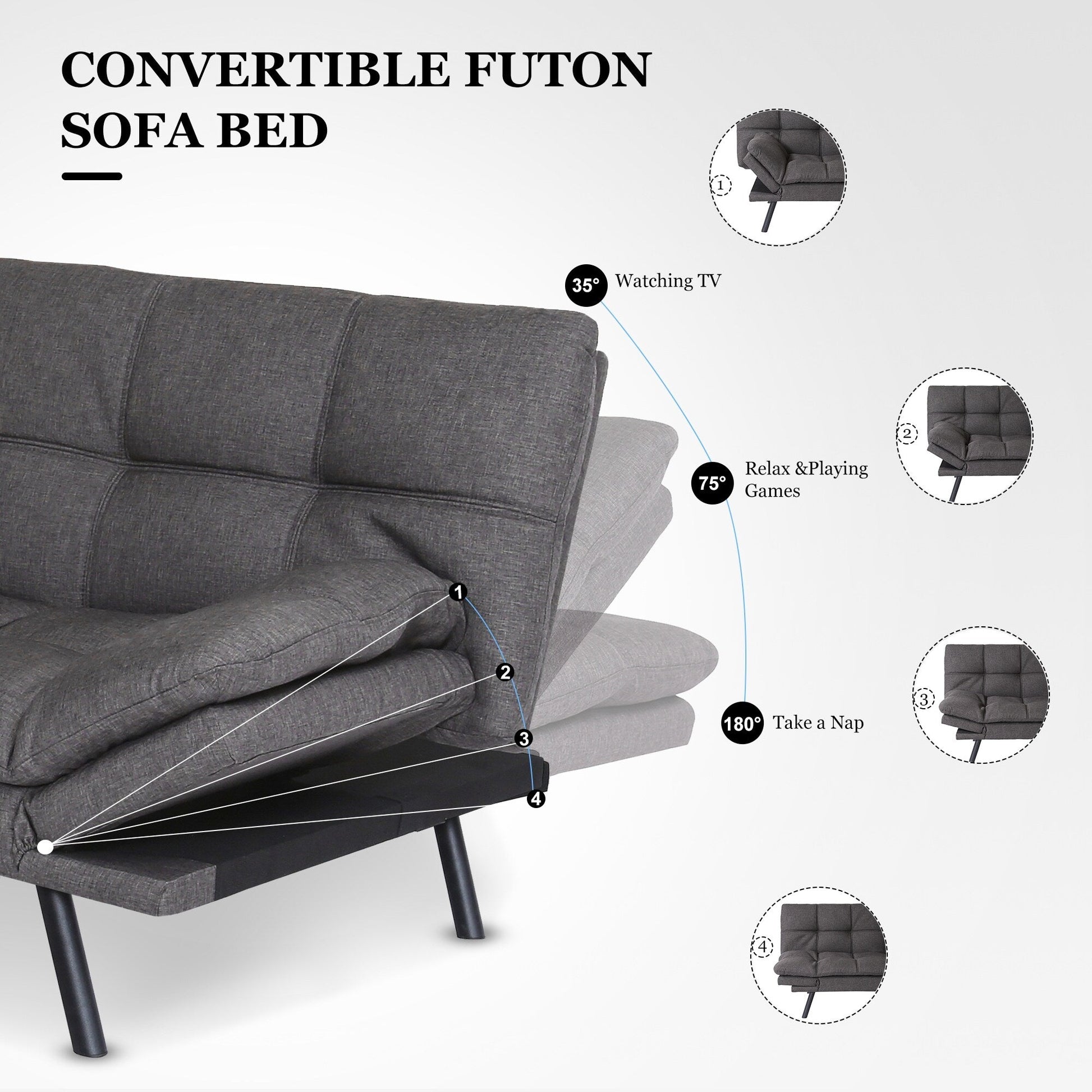 • This sofa bed transforms effortlessly from a modern Futon sofa to a cozy bed. Perfect for apartments, offices, guest rooms, and bedrooms. It meets diverse needs, whether you need a place to relax after a long day or a bed for guests. With its stylish design and functionality, it adds charm and convenience to any living space.
