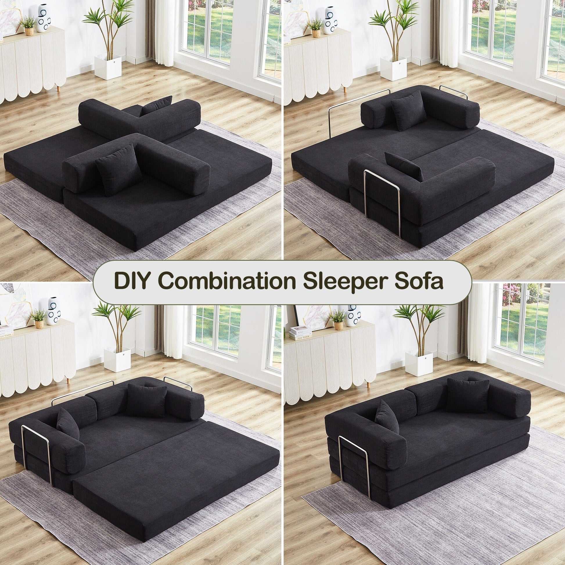 Convertible Sleeper Sofa Bed with Pillow, 4-in-1 Corduroy...