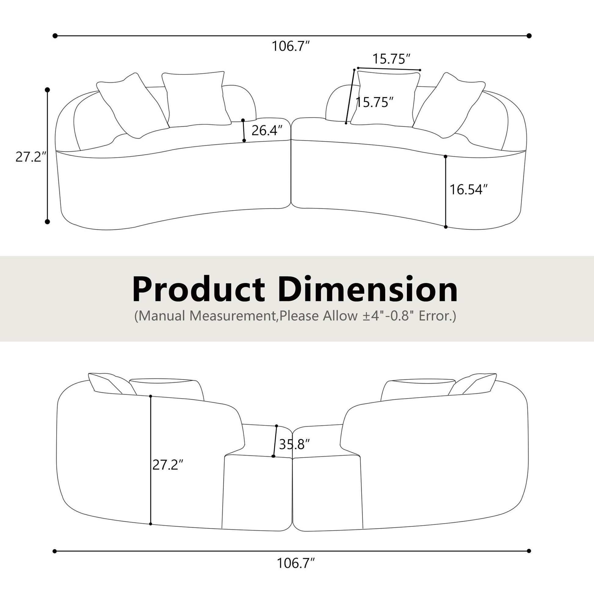 Modern Curved Design: Elevate your space with this stylish curved couch. Its 106.7'' size and cloud-like shape create a stunning focal point, for both large living rooms and compact apartments. As a cozy couch for lounging or gathering, it brings a touch of elegance to any decor