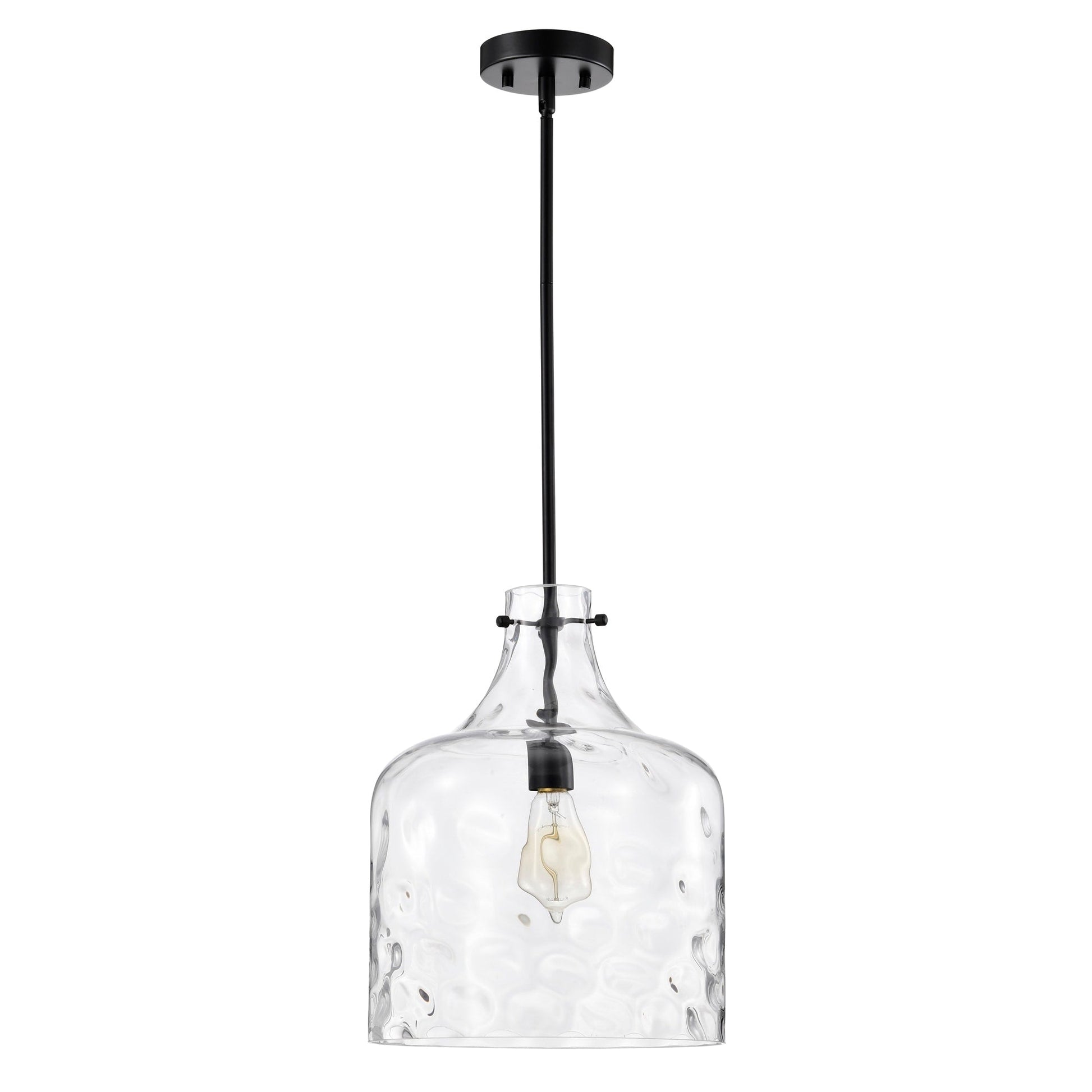 Enhance your interior with our Pendant Light, showcasing a clear dimpled glass shade that radiates timeless elegance. Designed with a metal articulating down rod suspension, it seamlessly accommodates vaulted ceilings, combining practicality with style. Explore a variety of finishes to effortlessly complement your decor. Featuring a single bulb configuration, it delivers both functional illumination and a hint of ambiance, making it a versatile lighting solution for any space.