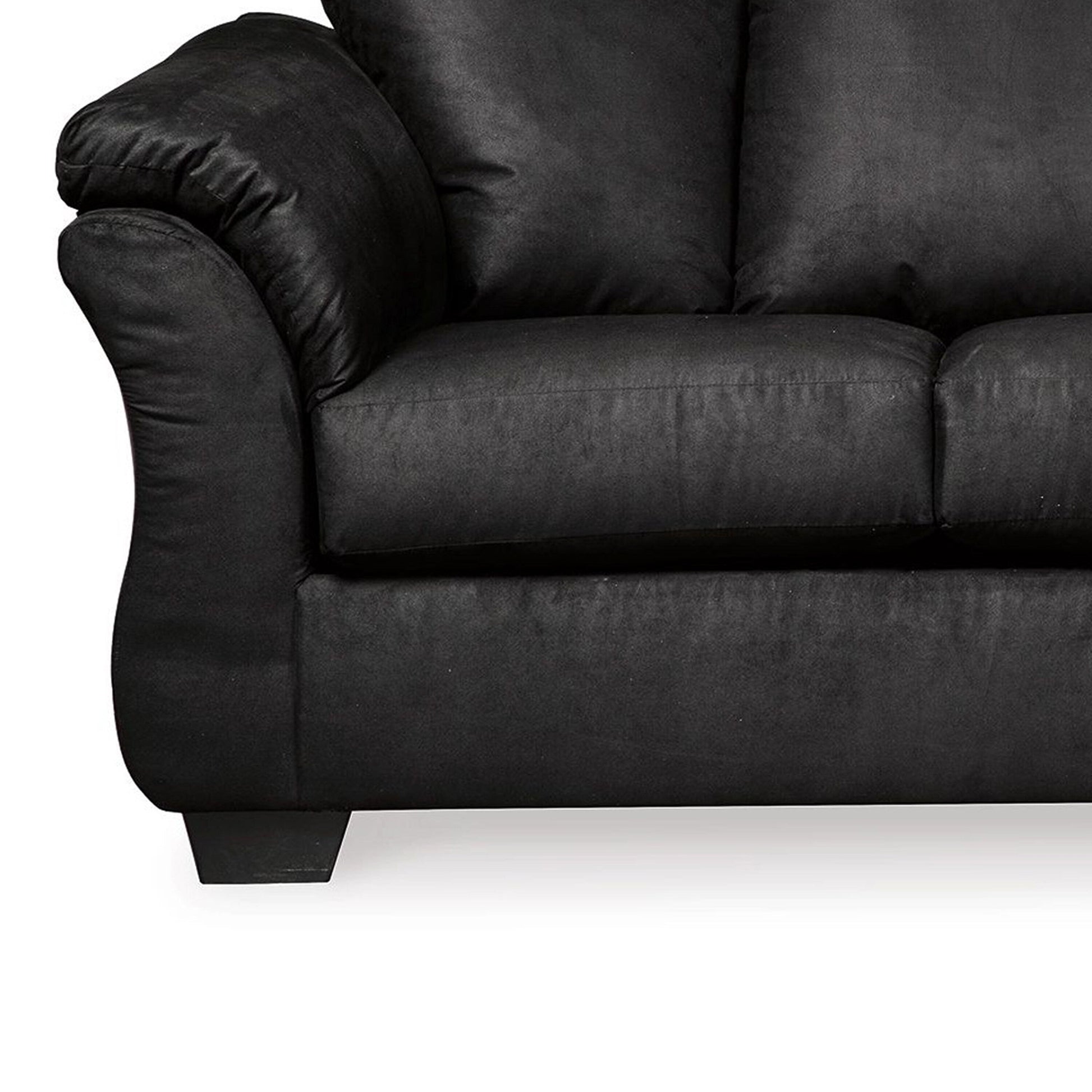 This sofa is a seamless blend of contemporary style and everyday comfort. Built with a corner-blocked frame, this sofa ensures long-lasting durability. Additionally, its high-resiliency foam cushions wrapped in thick poly fiber offer superior support. The black-colored polyester upholstery adds warmth and elegance, complementing any decor. Check out our Dari collection for more options.