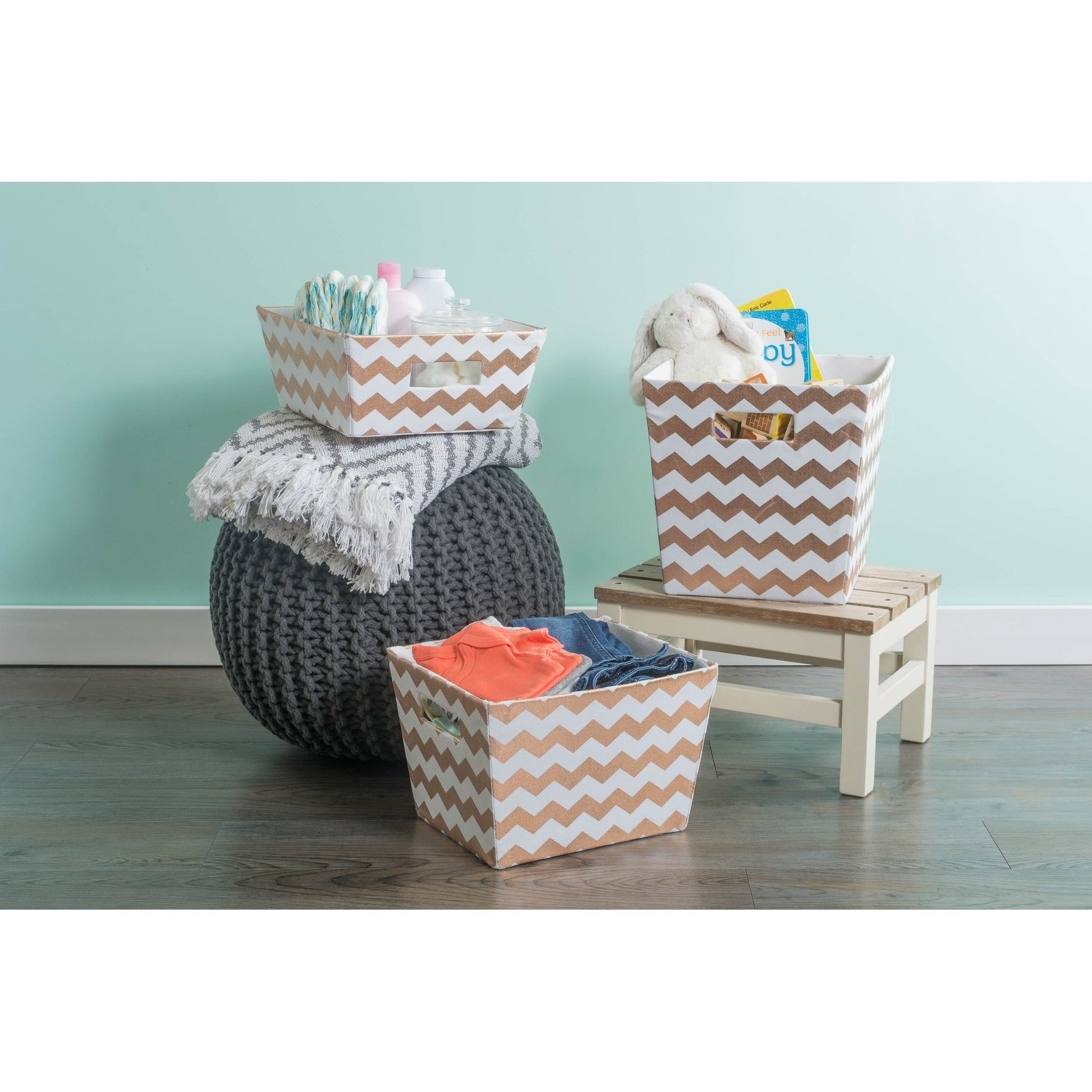Get creative with fun designs and colors that are easy to mix and match with an assortment of sizes, colors, and patterns. Bring color and interest to a dull room with vibrant hues and a sophisticated look while also adding functionality. These trendy bins have become very popular due to their simple yet chic look, versatility, and dependability.