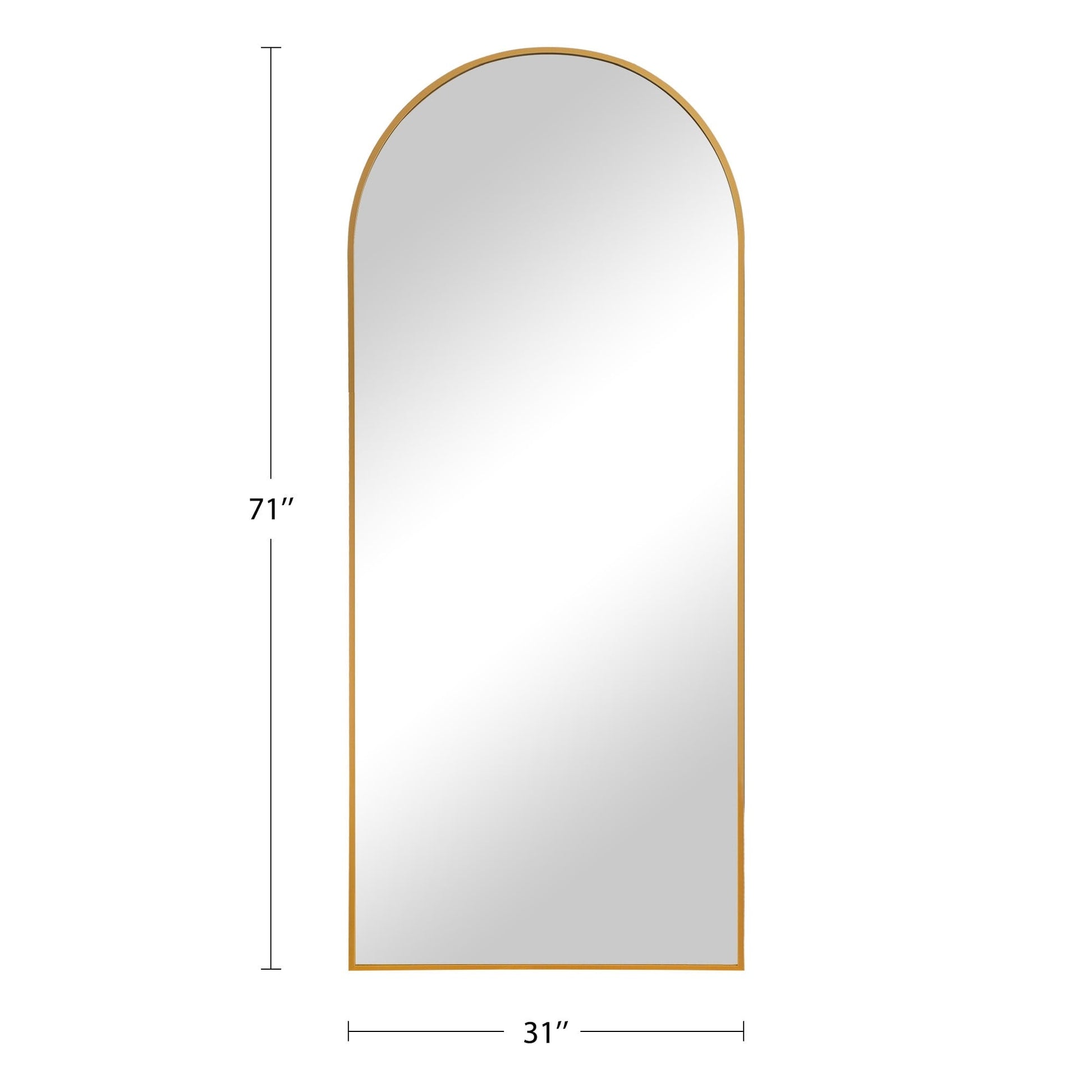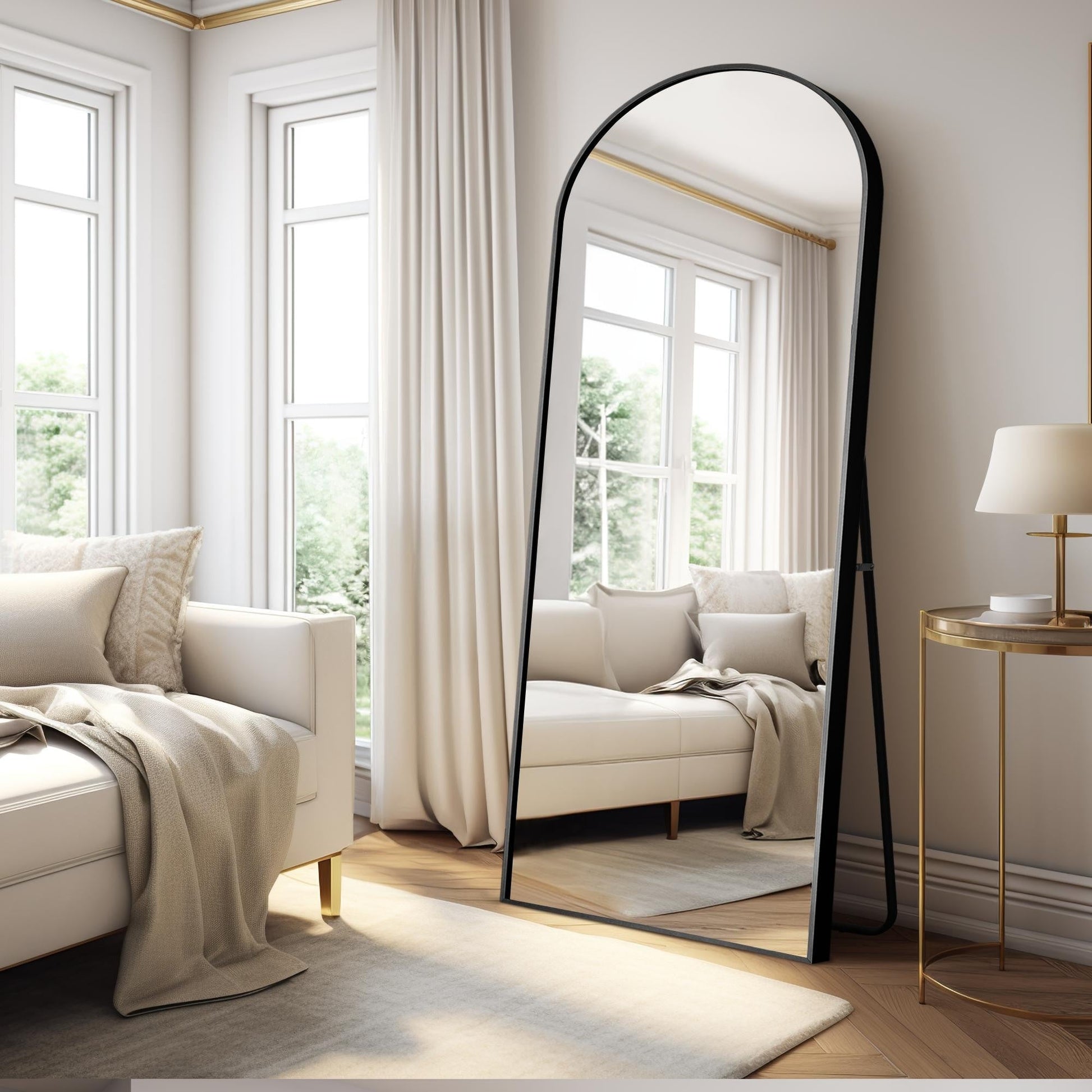 Elevate your space with the Arched Full Length Floor Wall Mirror, a standing mirror that brings a touch of sophistication to any room. This arch mirror's slim, ultra-thin frame and distinctive arch-crowned silhouette add a modern yet timeless appeal to your home decor. Crafted with shatter-proof glass, it offers exceptional reflective clarity and safety, making it a reliable choice for a full length mirror or floor mirror. Versatile in its installation, this standing mirror can be easily mounted on your wall or placed on the floor, available in multiple sizes to suit your space perfectly.