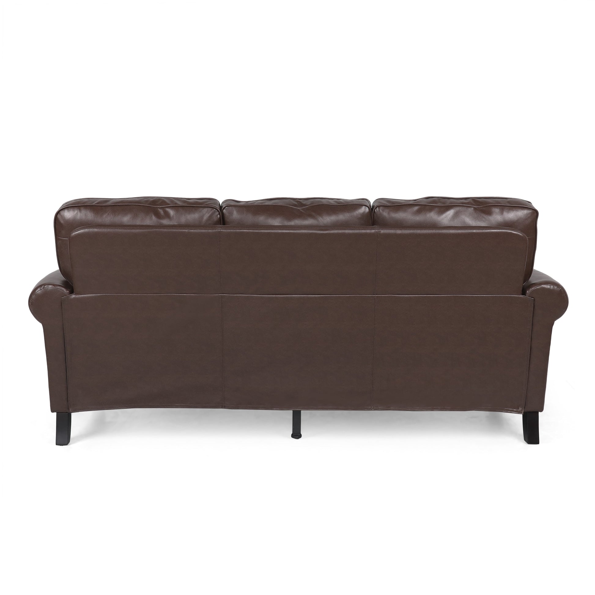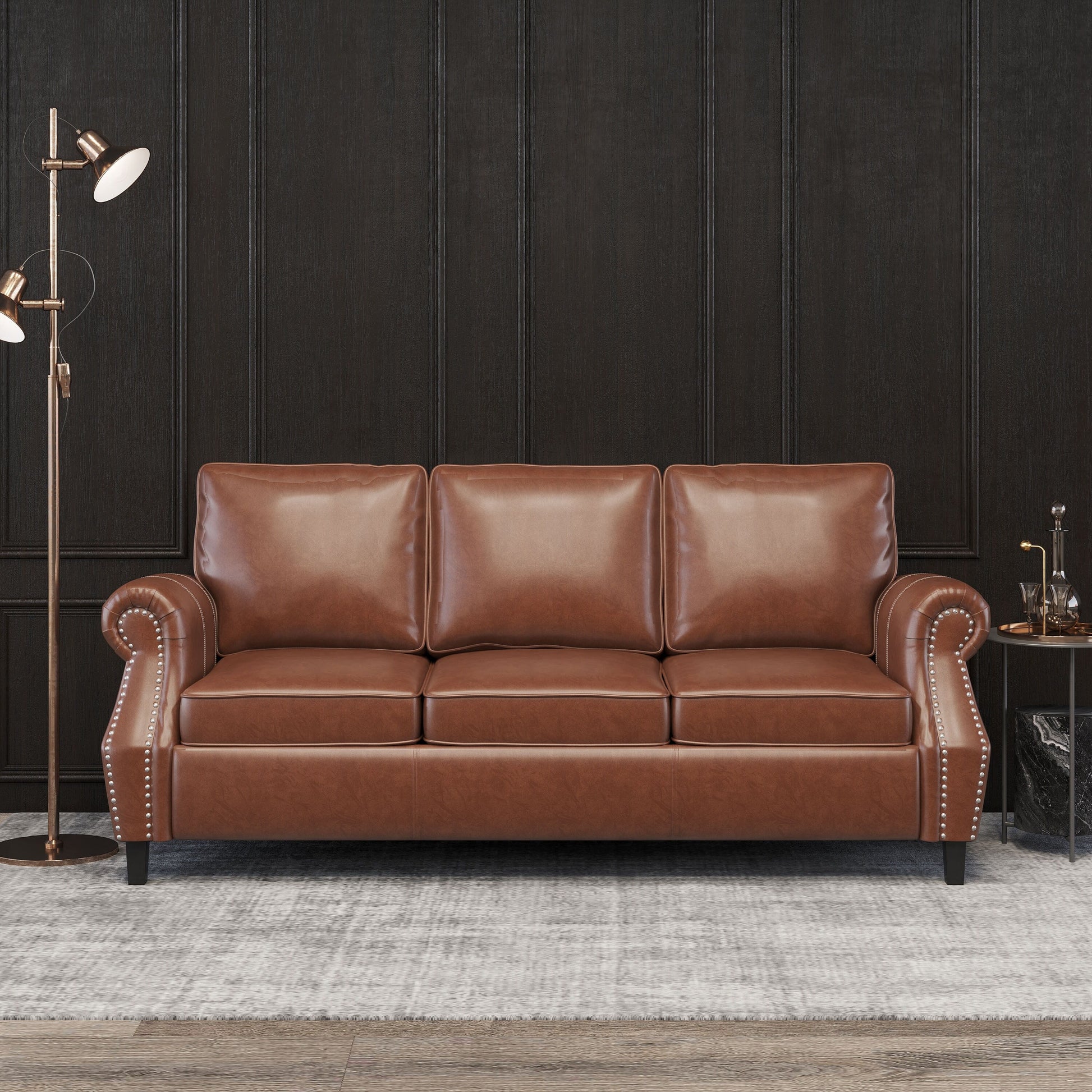 CONTEMPORARY DESIGN: Featuring beautiful faux leather upholstery, rolled armrests, and nailhead trim, our three-seater sofa offers the look, feel, and design of a truly contemporary piece. With a minimalistic yet refined structure, this sofa brings out a simplistic style that emphasizes comfort and functionality.