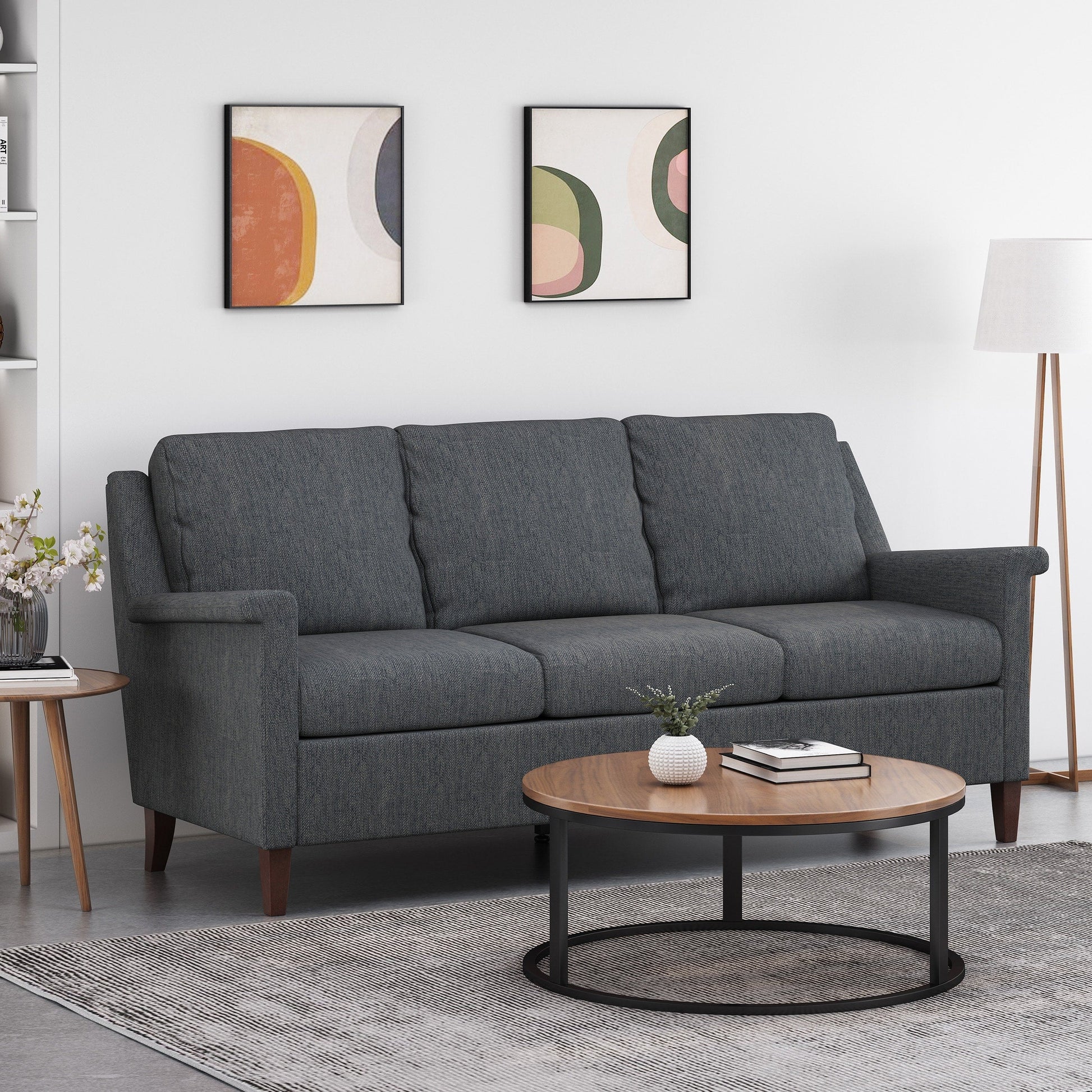 Showing off its clean lines, smooth upholstery, and thin splayed legs, our sofa offers the look, feel, and design of a truly contemporary piece. With a minimalistic yet refined structure, this set brings out a simplistic style that emphasizes comfort and functionality.