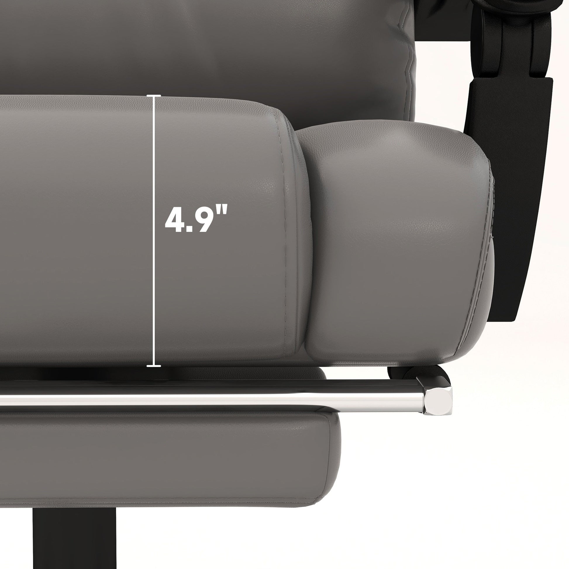 All Day Comfort: Featuring a high-back and thick padding design that provides neck, back, and lower lumbar support, the computer chair will keep you comfortable for those long days. The padded armrests keep the pressure off your elbows for better support. Faux leather is soft to touch and easy to clean from TV snack spills.