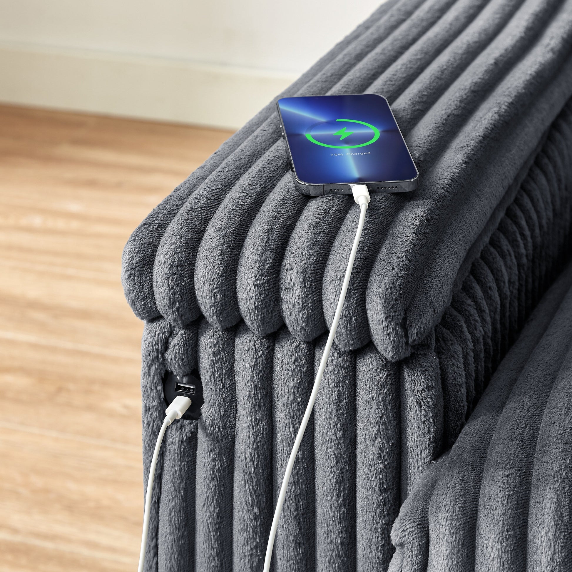 Spacious Storage & USB Port: Features two armrest storage spaces sized 26.8'L x 15.8'W x 5.91'D, perfect for tucking away pillows and blankets. Additionally, it includes one built-in USB charging port and two side pockets for easy organization of magazines and remotes.